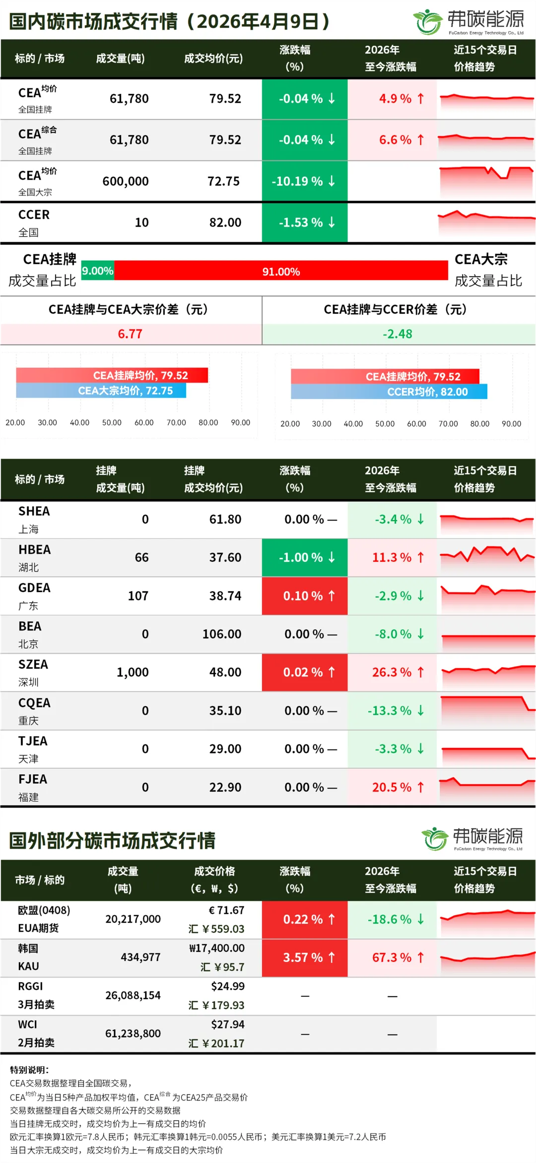 碳市行情26.4.9 | CEA挂牌成交6.1万吨,成交均价下跌...
