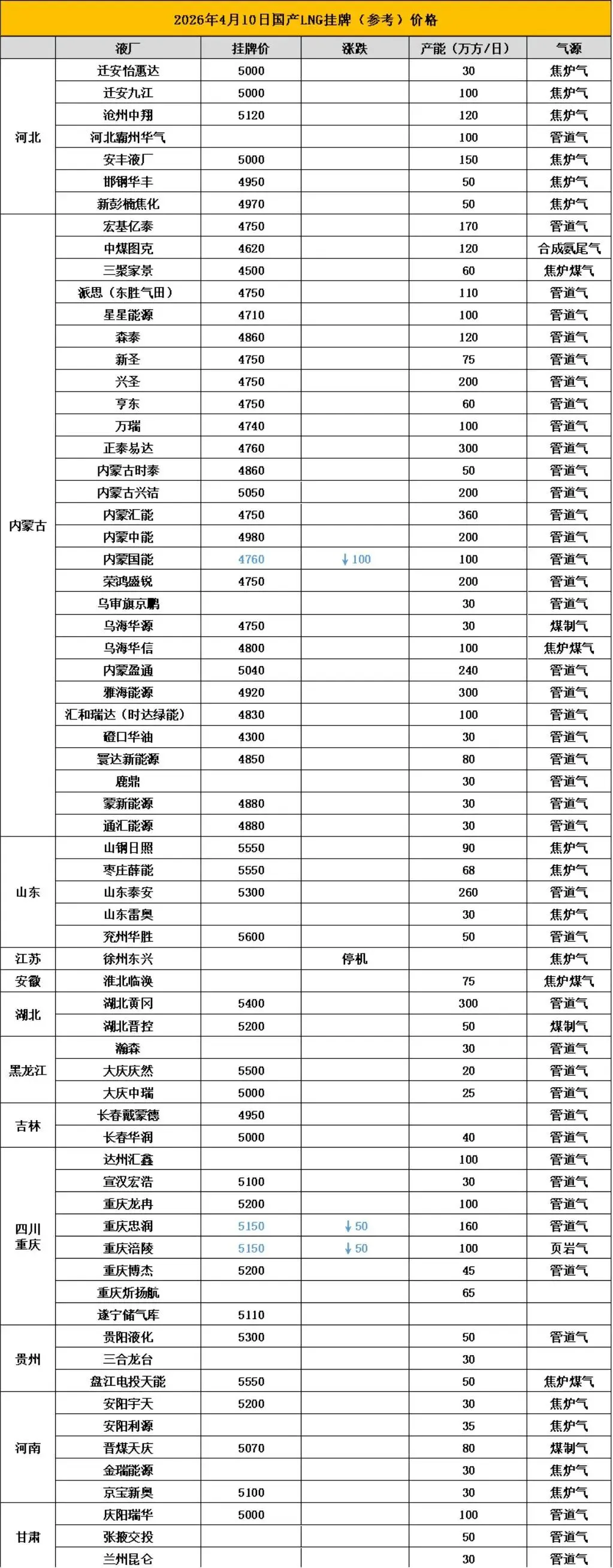 【2026年4月4日价格行情】假期第一天,液价持稳为主