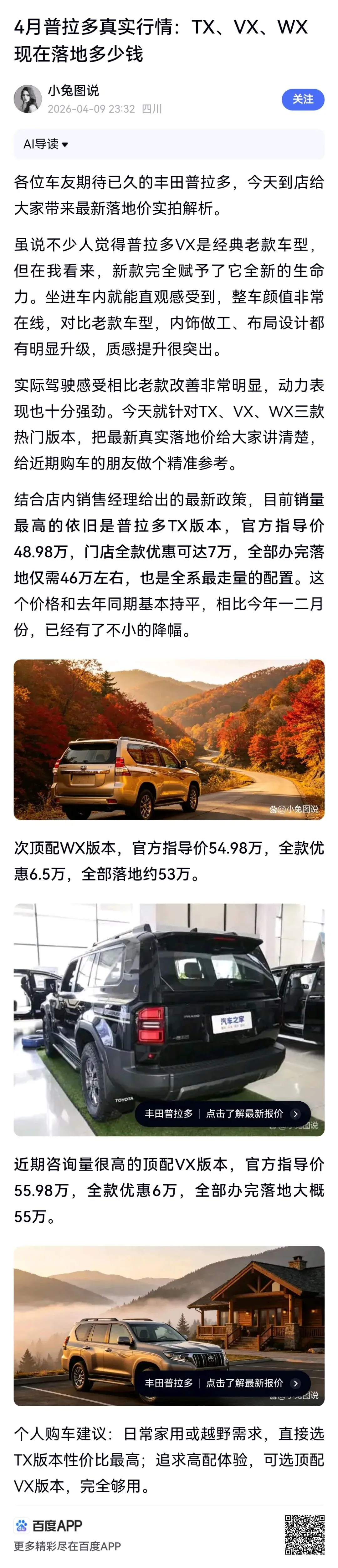 >普拉多真实行情:TX、VX、WX现在落地多少钱?