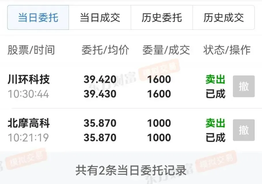 昨天看着形势一片大好,盘中个个高开高走,早盘抢了个国产算力走的慢的川环科技,业绩票北摩高科,到后来就无从下手了,进了深水的中油资本。结果又被反转,幸好深水的中油给保了命。今天按照模式卖飞了川环,原来走的慢也是要到达的。北摩虽业绩好,奈何底部还无人问津,先止损。中油作为游资聚集地,继续等待,今天没开新仓。