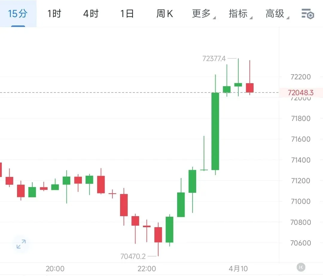 从当前盘面结构来看,比特币晚间本轮反抽虽在短期拉升力度与上行速率上表现亮眼,但后续量能未能形成有效配合,上行延续性显著偏弱,从四小时级别可以看到,晚间这波航情启动前,磐面整体处于碎K调整格局,且普遍带有较长下影线,说明下方存在明确的买磐承接能力;航情两度回踩70500一线都被快速拉回,阶段性支撑已经得到确认。结合小时级别来看,航情虽借着大阳线拉升突破了72000的箱体顶部,目前也在尝试震荡企稳,但多头后续动能明显跟不上,本轮突破大概率是假突破,后续还是要去走回调修正的路线,所以午夜布橘我们还是保持看箜思路不变。