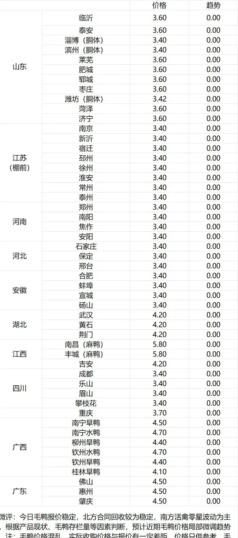 2026年4月10鸭苗、毛鸭行情早报与趋势