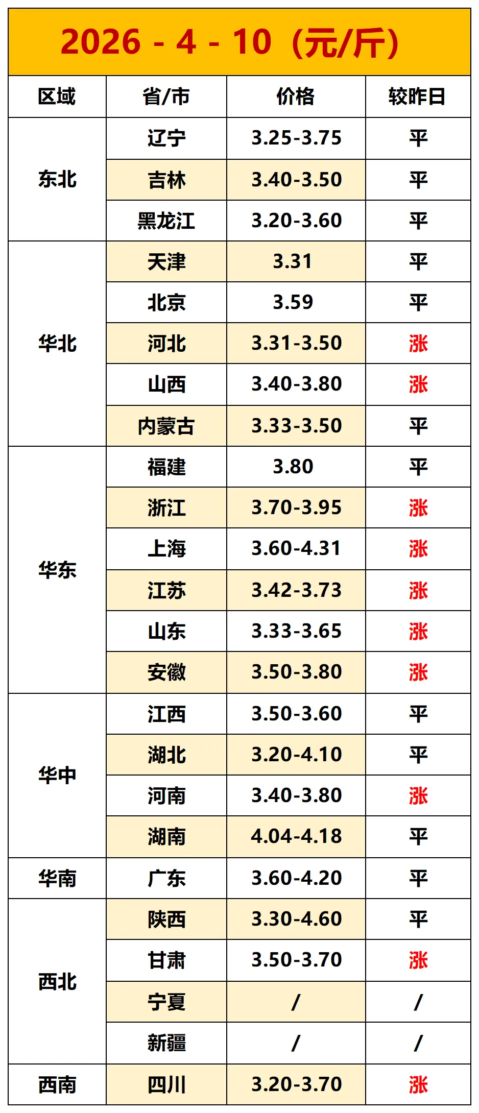 2026年4月10日全国各地鸡蛋报价..................................................................................................