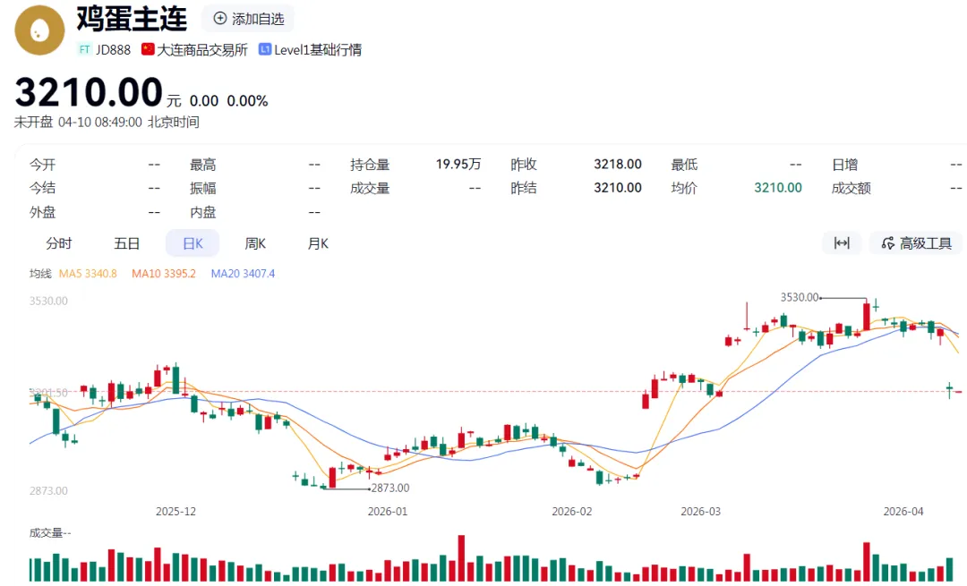 4 月 10 日开盘前价格 3210 元,处于前期上涨过程中的平台支撑位(3200-3250 区间),是多空博弈的关键位置。