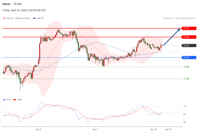 No.1 | 在 74.00 之上,看涨,目标价位为 76.60 ,然后为 77.70 。 |