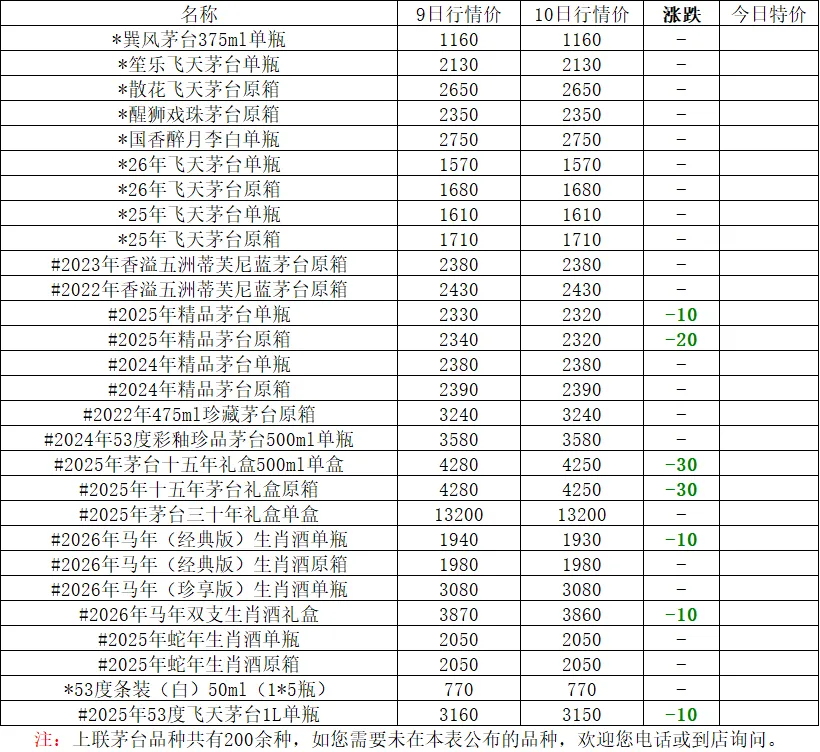 6.因茅台供销两旺,在一日之中偶有浮动属正常情况,本表仅作参考