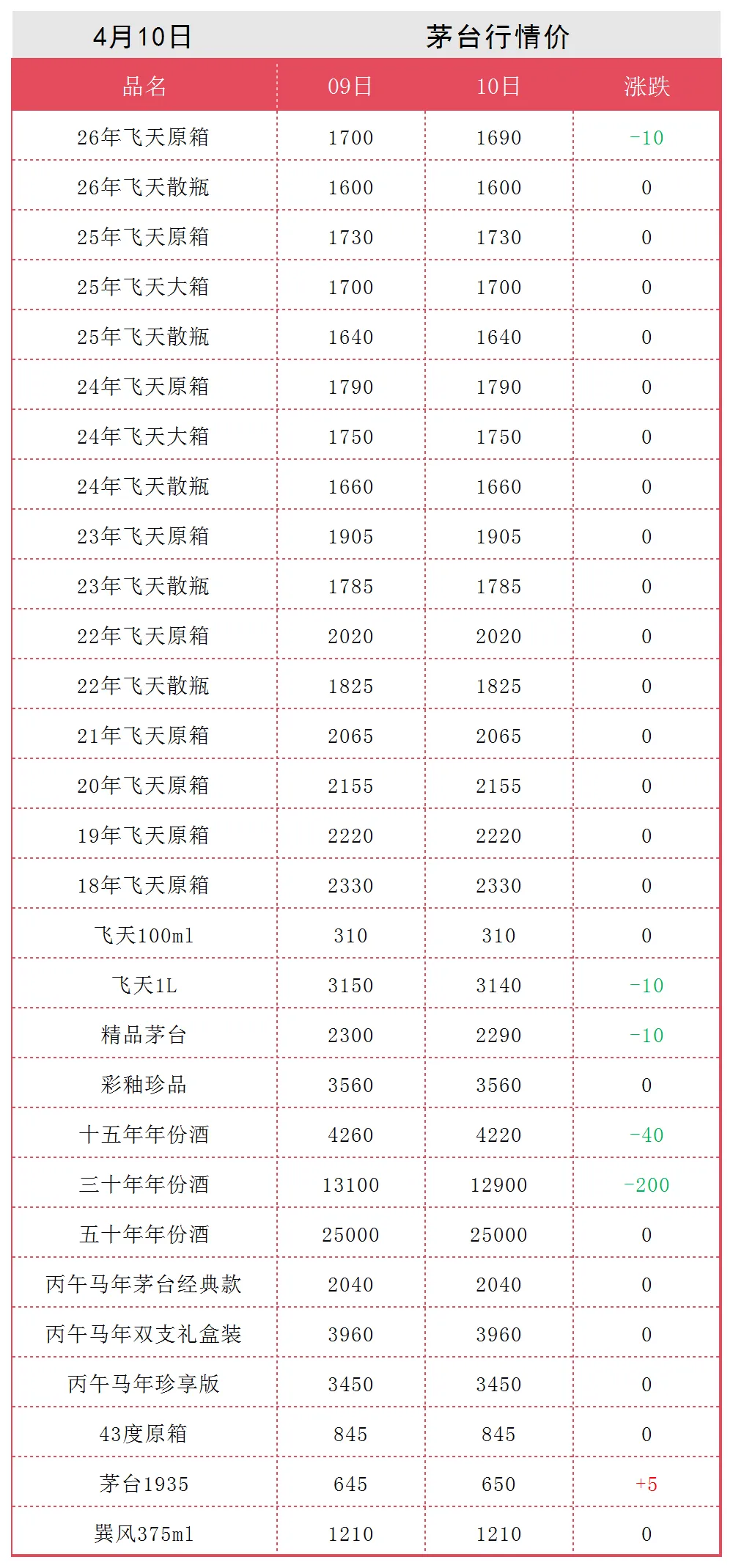 【4月10日】茅台行情