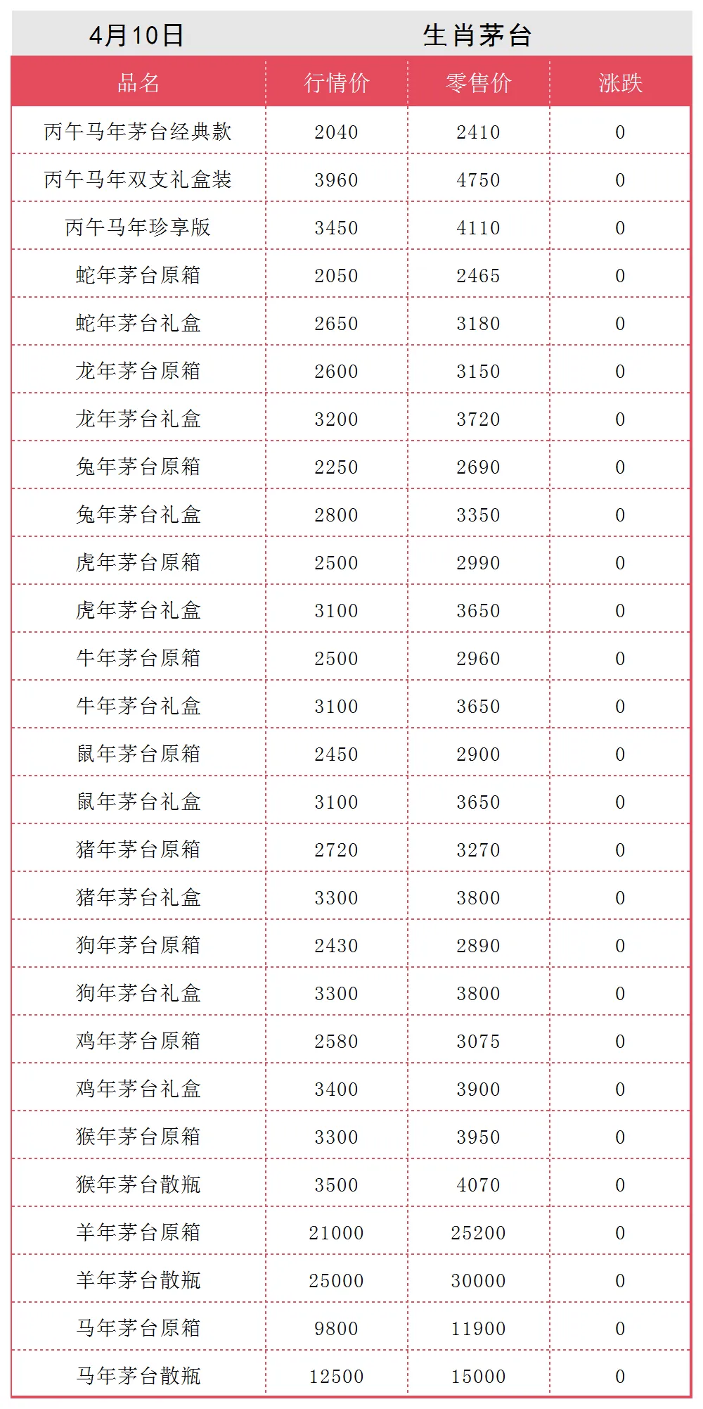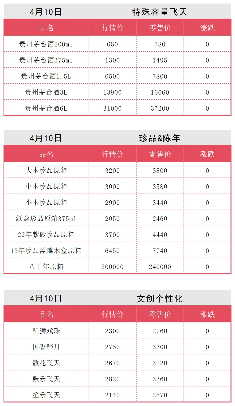 4月10日各类茅台批发行情价