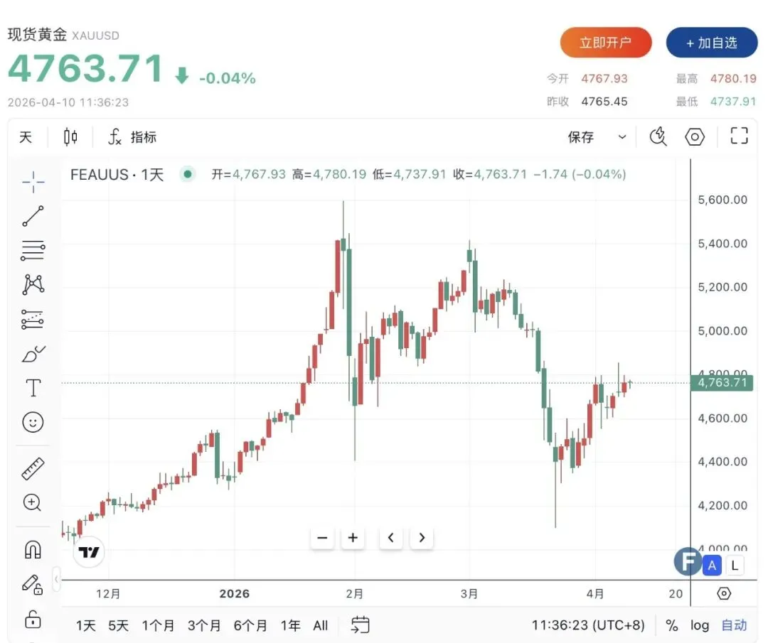 现货黄金价格周四收盘上涨46.46美元,报4765.45美元/盎司;上一交易日,金价曾触及近三周高点。