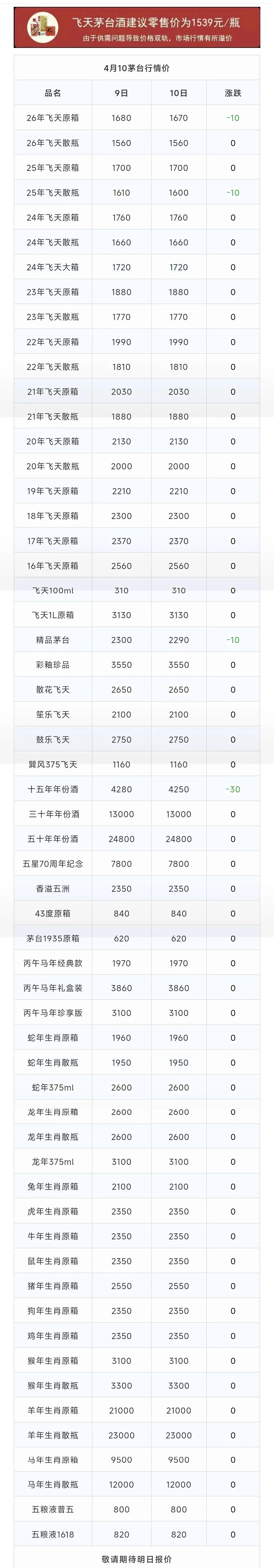 当前位置:首页>行情>飞天价格下跌!茅台酒4月10日行情价格