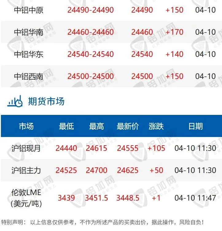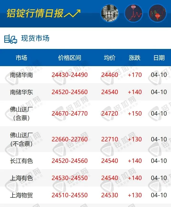 涨!04.10 每日铝锭行情报价