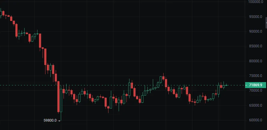 - CPI 符合预期(30%):冲高后回落,反弹高点73000-73500
