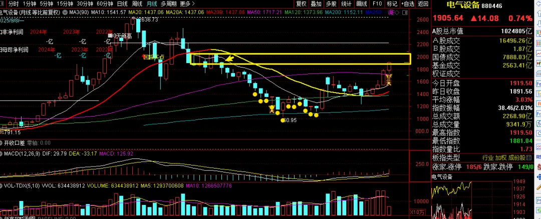 反弹通常表现为主要指数在当日或前几日都走低,但是当日收盘时却高涨。比如,道琼斯指数在早上开盘时下降了 3%,但是随后就恢复并在收盘时高涨。或者说道琼斯指数在收盘时跌了 2%,在第二天收盘时反弹。我们经常把这种现象称做反弹意图,但也有意外的时候。例如,1998 年 10 月伴随高成交量,大盘筑底的第一天收盘时平均股价比前一交易日涨了一半。所以,需要耐心守候,头几天的指数上涨并不能告诉你反弹能否成功 在反弹迹象呈现的第四天,如果你看到一项指数在高成交量的前提下暴涨,这就很可能是一次真正的反弹。最强劲的反弹势头,通常发生在首次反弹后的第4-7天。 一两次确认信号并不意味着你可以毫不顾忌地买入,它只是告诉你可以买一些率先强劲反弹、突破价格形态的优质股,同时,再次确认反弹是否成功是至关重要的。要记住:所有的牛市开始都是伴随着强烈的价格和成交量上涨而展开反弹,等待和观察大盘表现绝对是值得的。 -- 25年的1.14堪称教科书式的模板 25年的4.21是反转,极端杀跌的典型。 6.23日的红三兵令人印象深刻 9.5日时分线V型反包。刚好9.5-9.11 5个交易日出现强劲反弹。 |