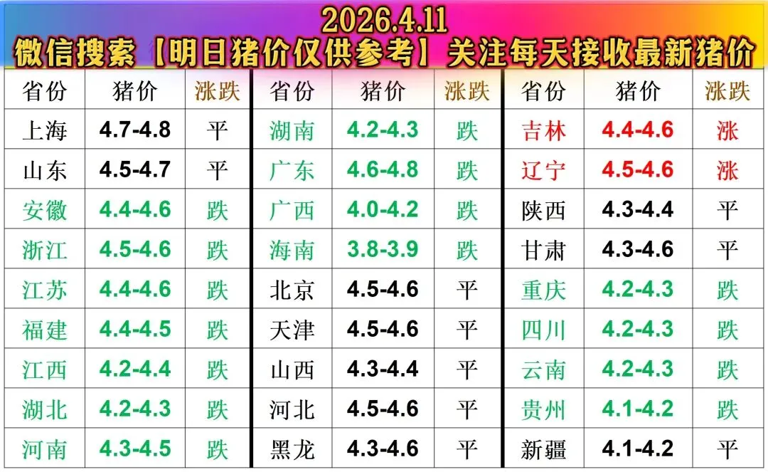 2026年4月11日明日猪价行情:猪价又跌!
