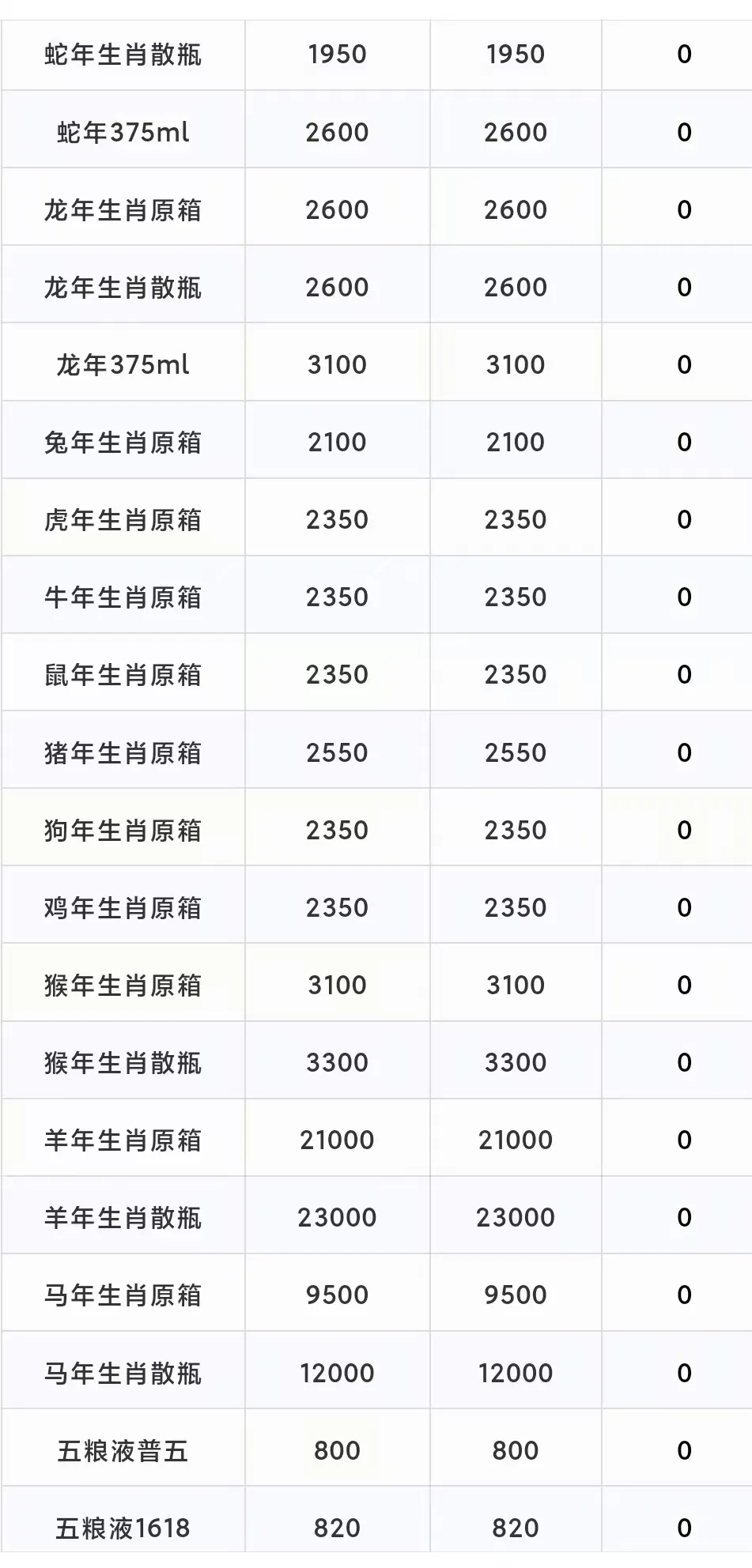斑马酒业 26/4/10 采购行情报价