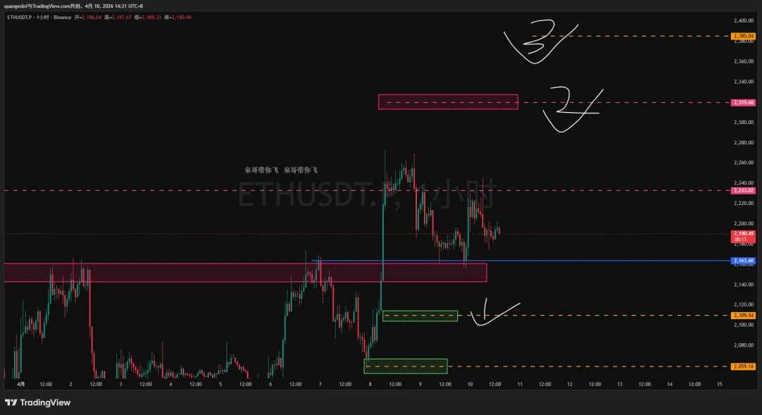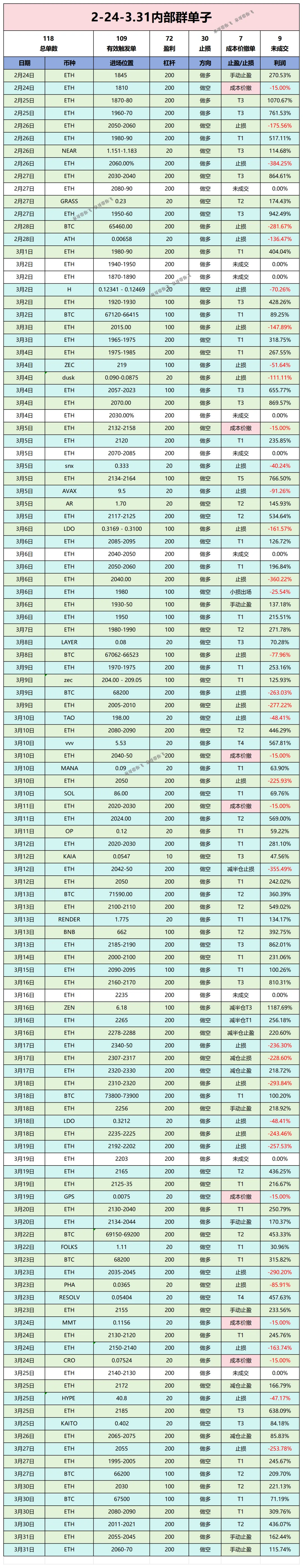 4月8号提到BTC回踩70210做多,可惜最低只到70422,没给到机会,ETH完美来到了我提到的2163做多位置,我也是让大家一起开了多单,成功拿下止盈,3月-4月,我们整体的胜率还是可以的。