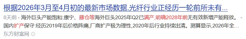 前几年价格战惨烈,行业产能出清。核心原材料光棒扩产需1.5-2年,2026年全球无有效新增产能。