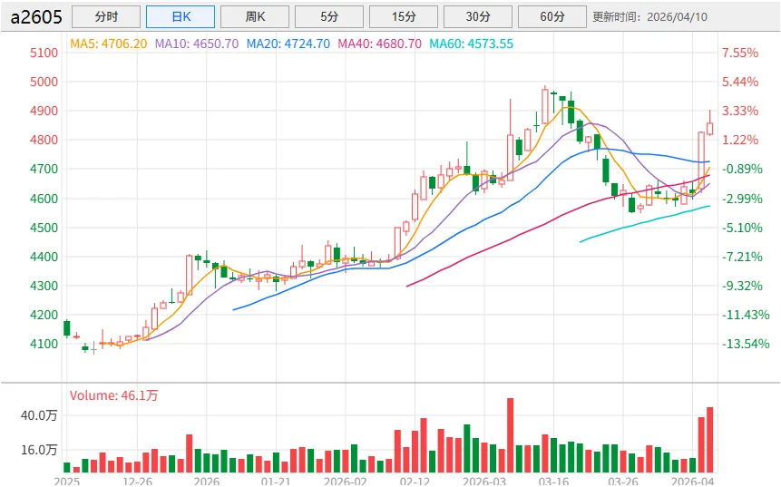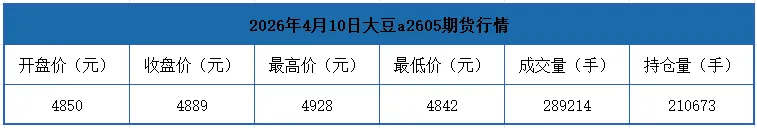 当前位置:首页>行情>2026年4月10日 期货行情【大豆】