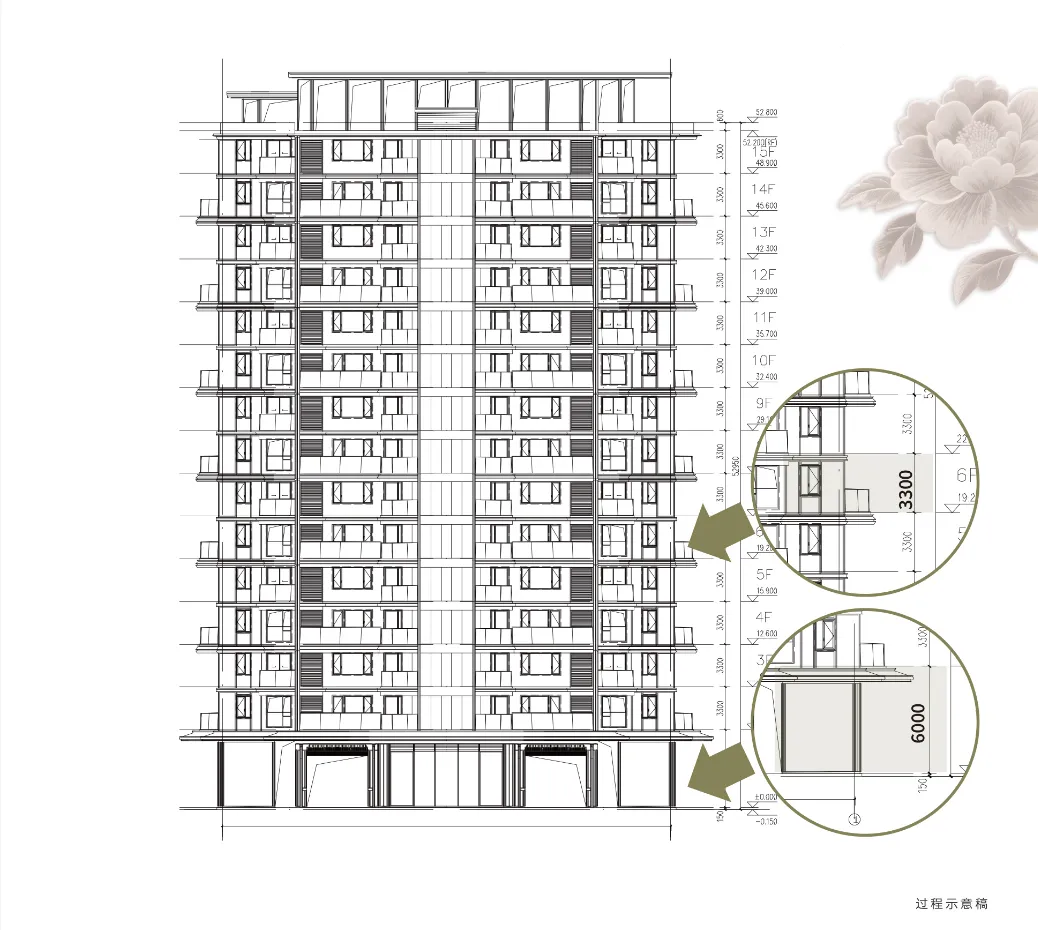 值得一提的是,项目在空间打造上突出了纵向尺度:最小层高约3.15米,远超普通住宅2.9米的标准;楼王层高更是高达约3.3米;首层全架空,架空层则可达到6米。