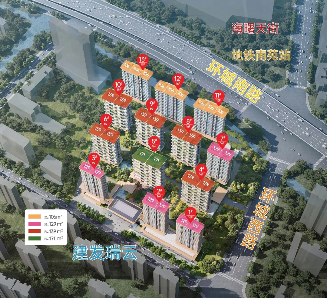 户型设置上,瑞云北基本延续了瑞云的产品定位:小高层主打106㎡、129㎡,四代宅产品面积则为139-171㎡,精准覆盖从刚改到高端改善的全周期需求。