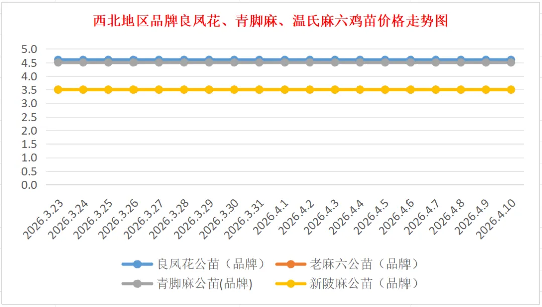 品牌新陂麻:价格稳定,到户价公苗4.50元/羽,稳。