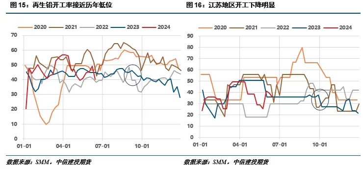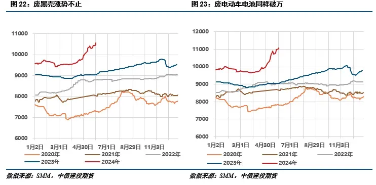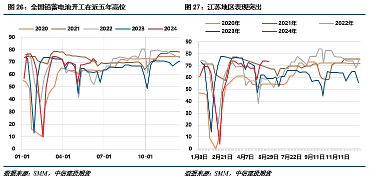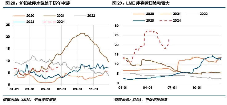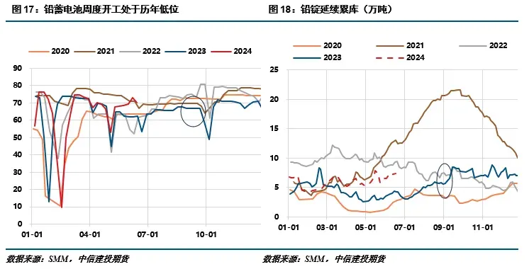 我们认为目前行情与23年9月初类似均为成本抬升逻辑,不过超往年水平的下游开工给予沪铅此前两轮未曾有过的需求筹码。但进口窗口初显,叠加铅强锂弱带走铅蓄电池性价比优势,旺季兑现存疑,预计上行空间受限。