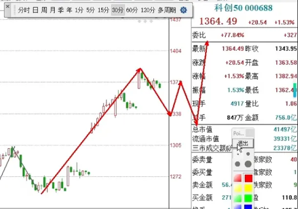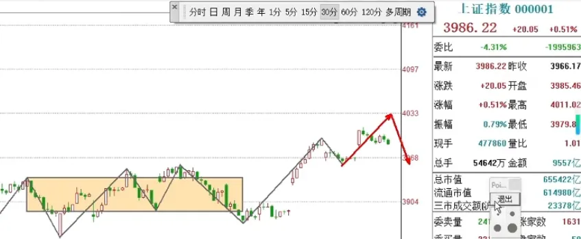 同步冲高回落,日线上涨无碍,30分钟级别回调一笔同样值得跟踪。5分钟级别中枢已现,离开段尚未确认,处于方向选择的临界点。