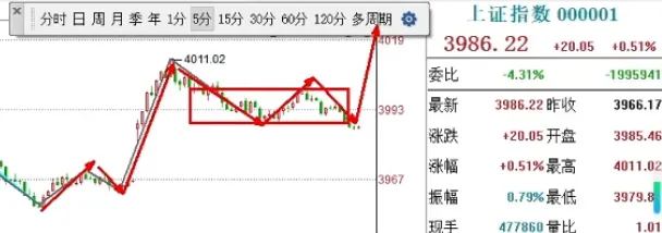 日线级别,自前期低点启动以来,本周以放量大阳线确立反弹基调,昨日回调后今日续涨,虽有冲高回落,但上涨结构保持完好。第一目标位4050点尚未触及,第二目标位4200点更是远景,当下无需过早担忧趋势终结。