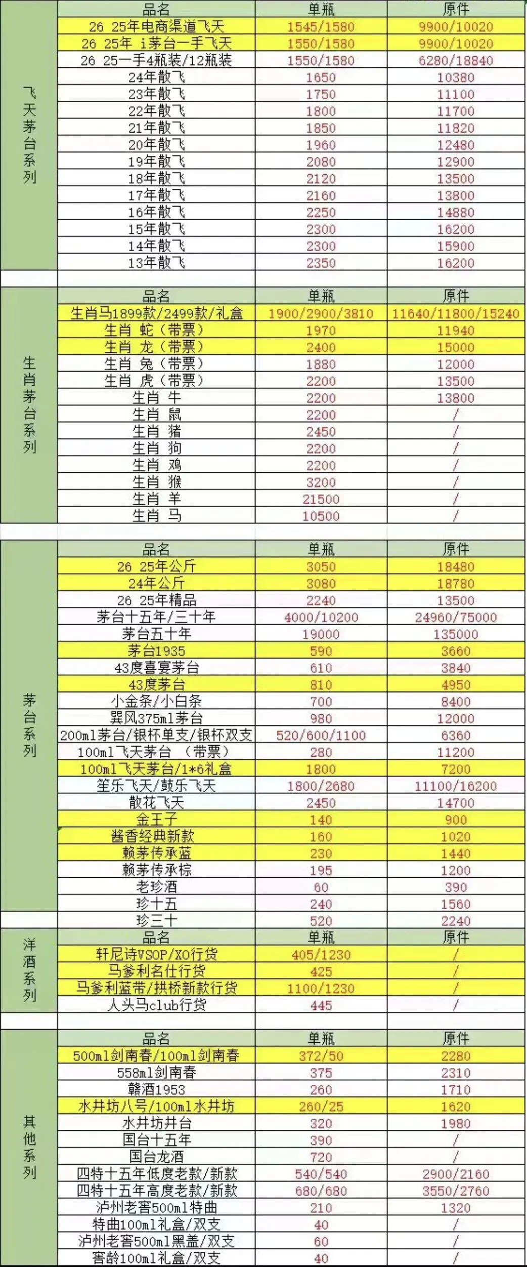 由于白酒飞天茅台价格存在实时变化、地区差异等原因,报价仅供参考。