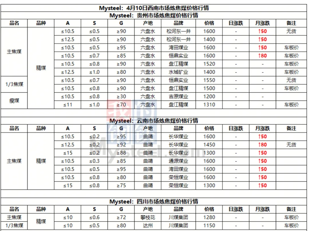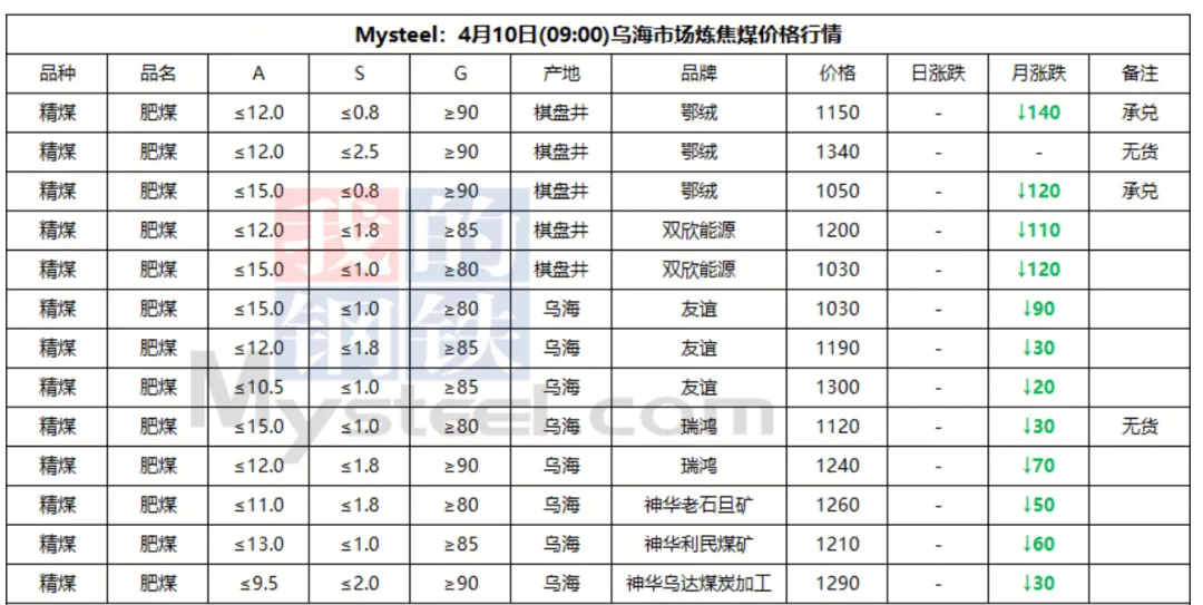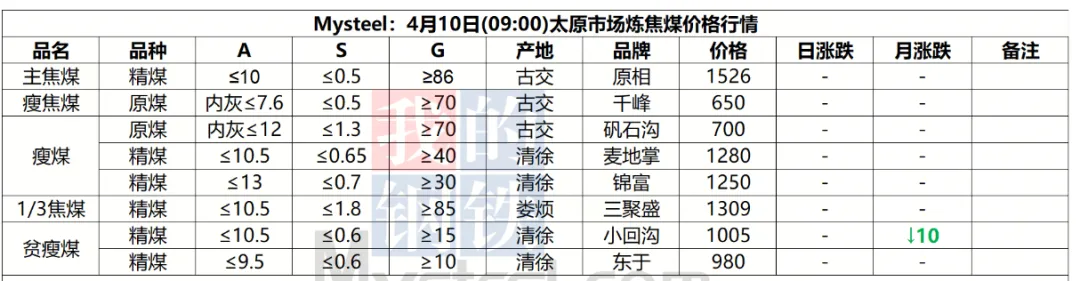 10日太原市场炼焦煤价格暂稳运行。区域内煤矿生产总体上基本正常,本周原煤产量较上期基本持平; 昨日内蒙地区个别焦企对焦炭价格提出第二轮上涨,主流焦钢企业暂未回应,由于成本支撑减弱,焦企在仍有利润的情况下维持高稳开工,后续仍需关注焦企利润边际及钢材价格走势等的改善情况。综合来看,预计短期炼焦煤价格将震荡运行。
