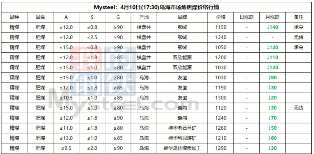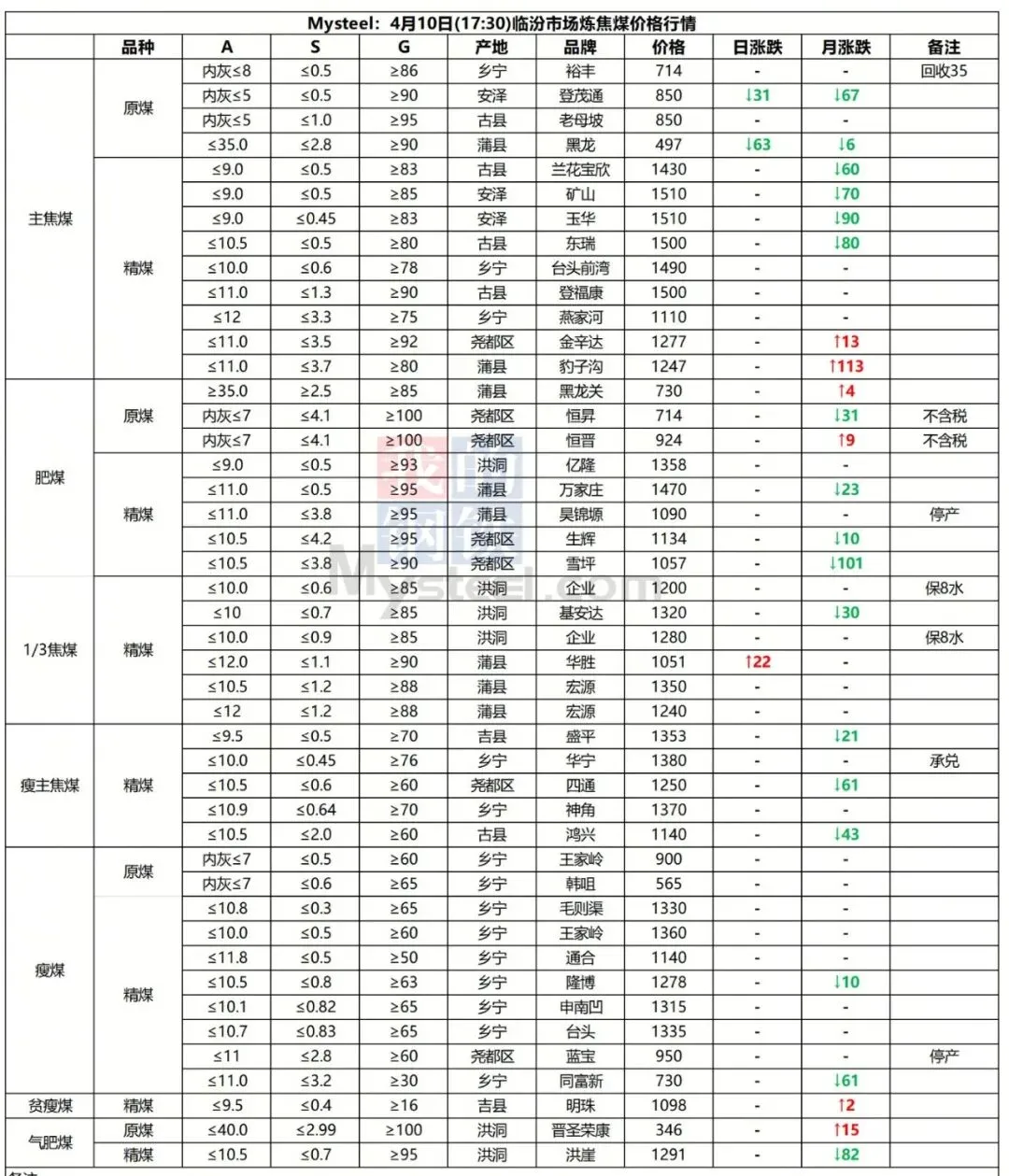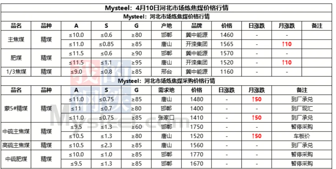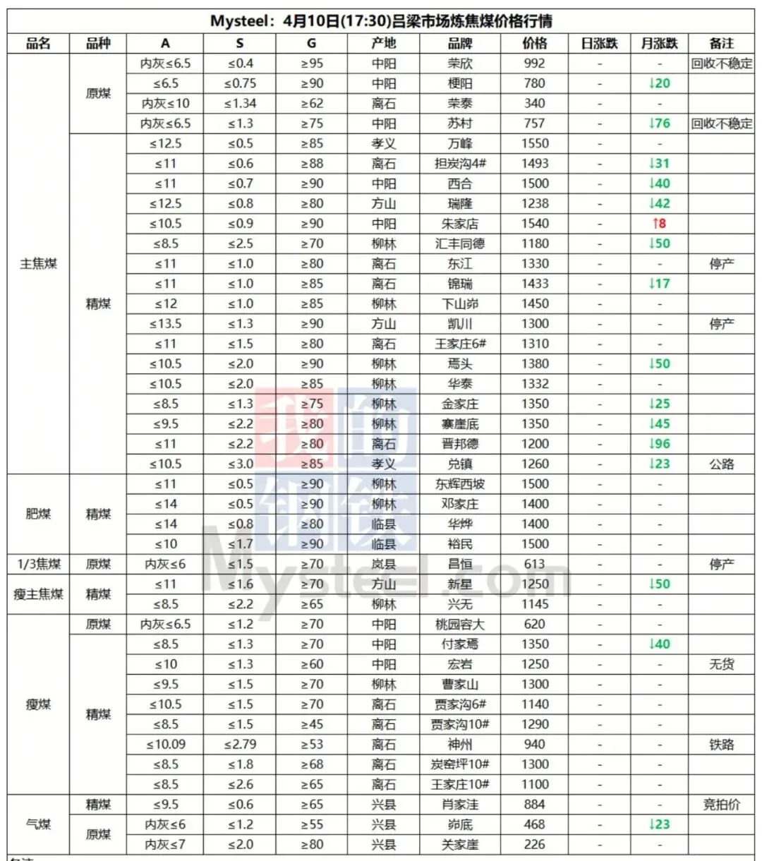 10日临汾市场炼焦煤价格暂稳运行。区域内煤矿生产总体上基本正常,本周原煤产量较上期基本持平; 昨日内蒙地区个别焦企对焦炭价格提出第二轮上涨,主流焦钢企业暂未回应,由于成本支撑减弱,焦企在仍有利润的情况下维持高稳开工,后续仍需关注焦企利润边际及钢材价格走势等的改善情况。综合来看,预计短期内临汾市场炼焦煤价格将震荡运行。