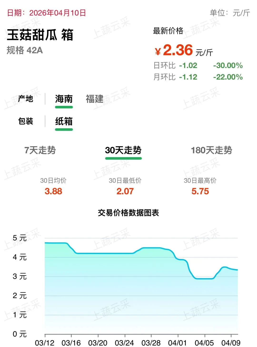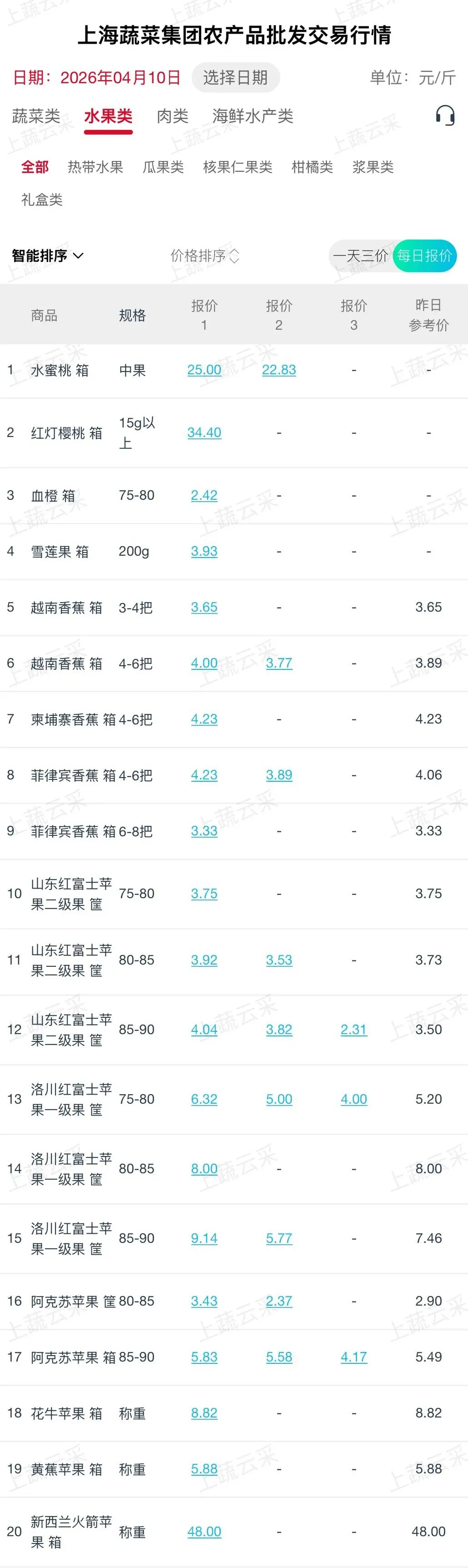 蔬菜、水果、肉、海鲜水产等更多品类交易行情