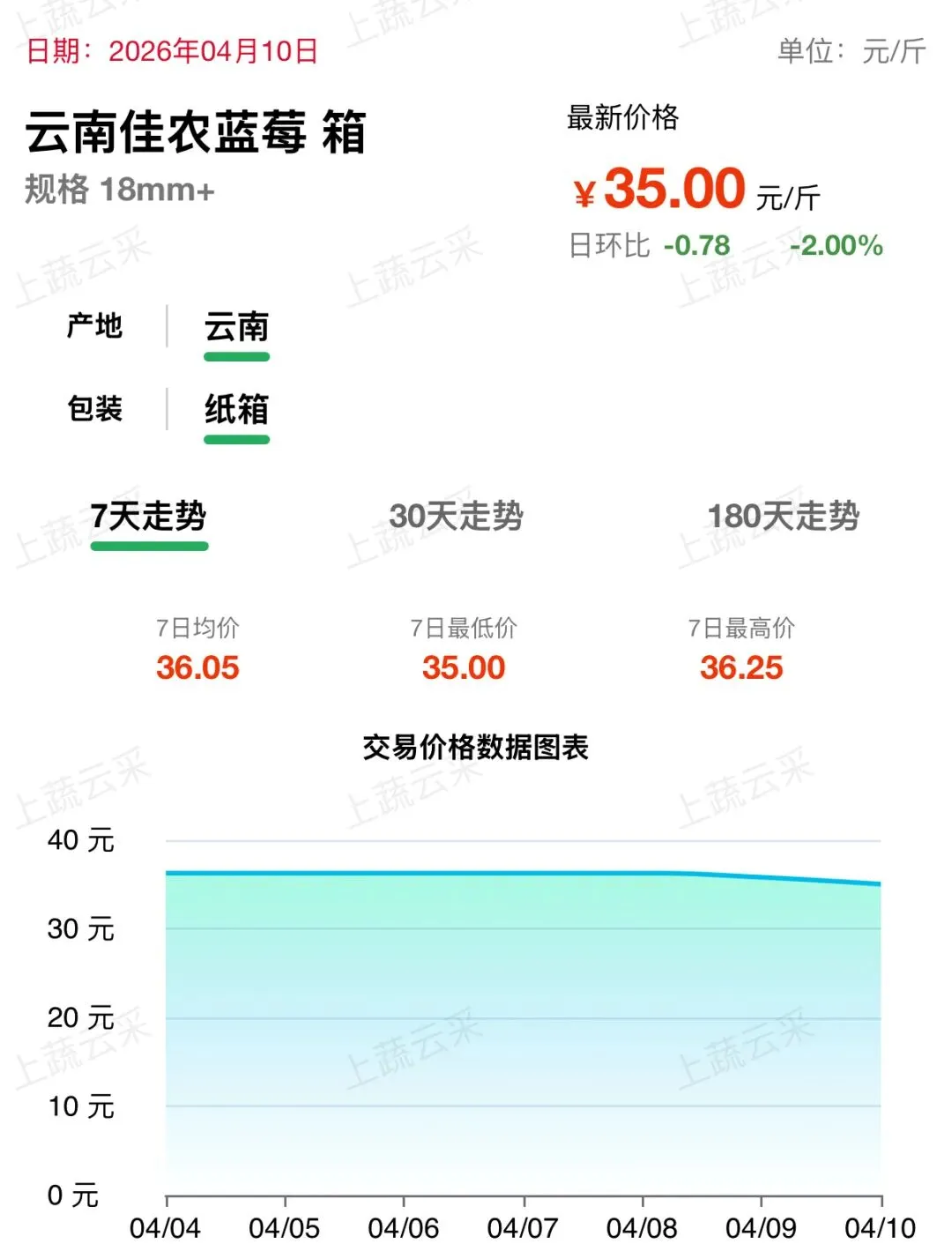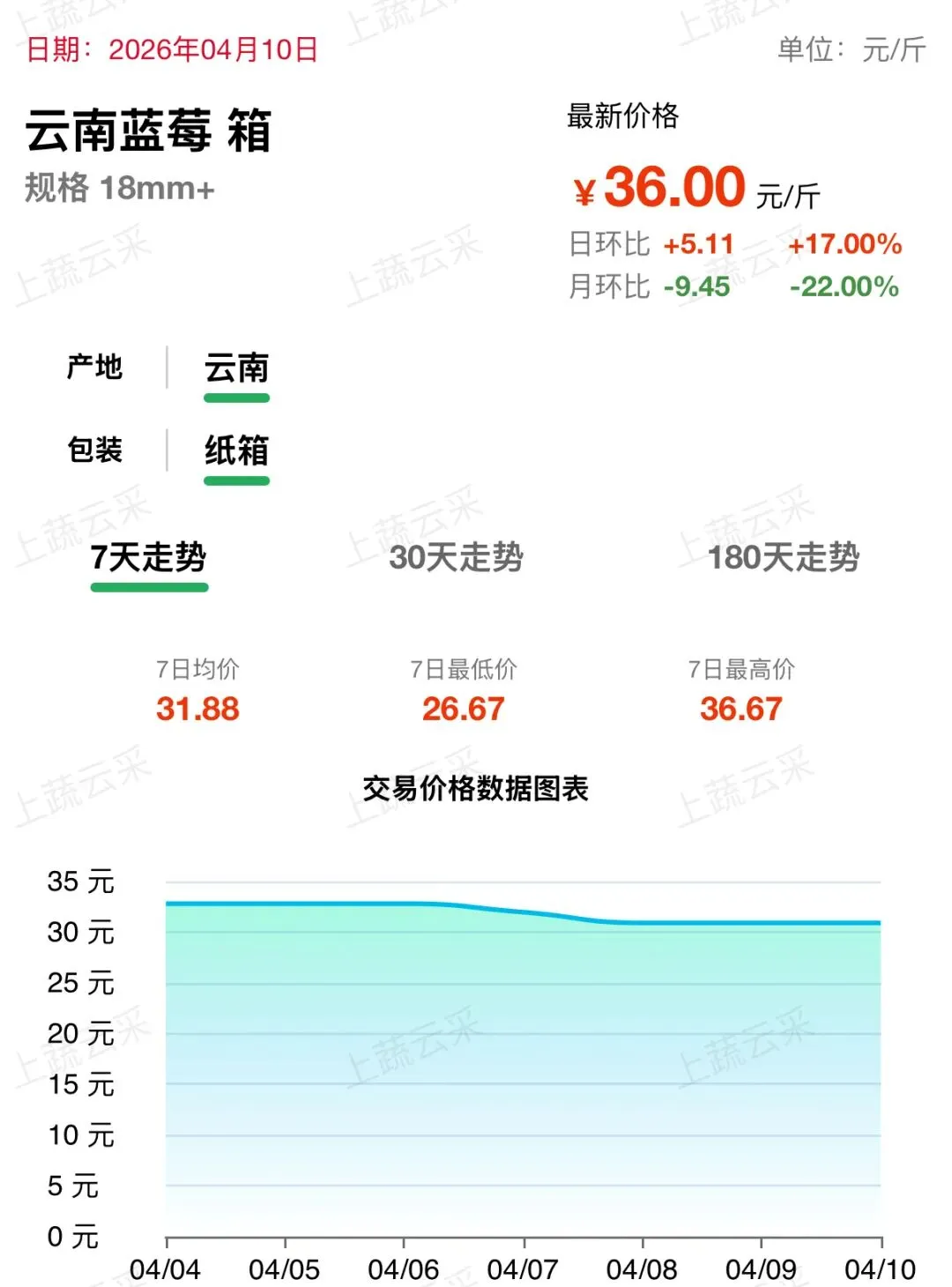蓝莓批发交易行情走势