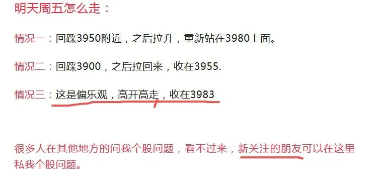 回顾昨天的预判,情况三最符合,高开高走,收在3983附近。完美!