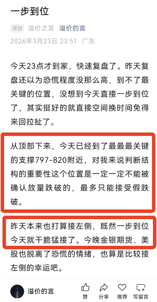 3月23日复盘:一步到位,最关键的位置不能破,最具性价比的左侧位置。