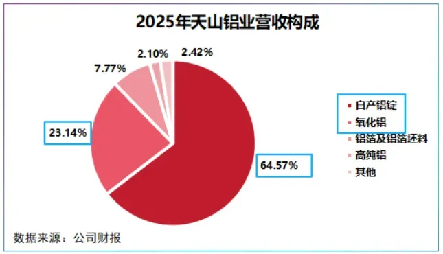 在天山铝业毛利率构成中,高纯铝无疑是最亮眼的一个,2025年公司高纯铝毛利率接近35%,是所有产品中毛利空间最大一个。