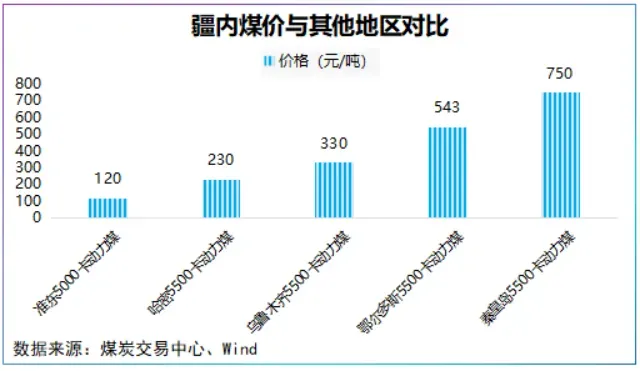 数据显示,哈密、乌鲁木齐5500卡动力煤单吨价格在330元以下,相较秦皇岛每吨最高可便宜约520元。
