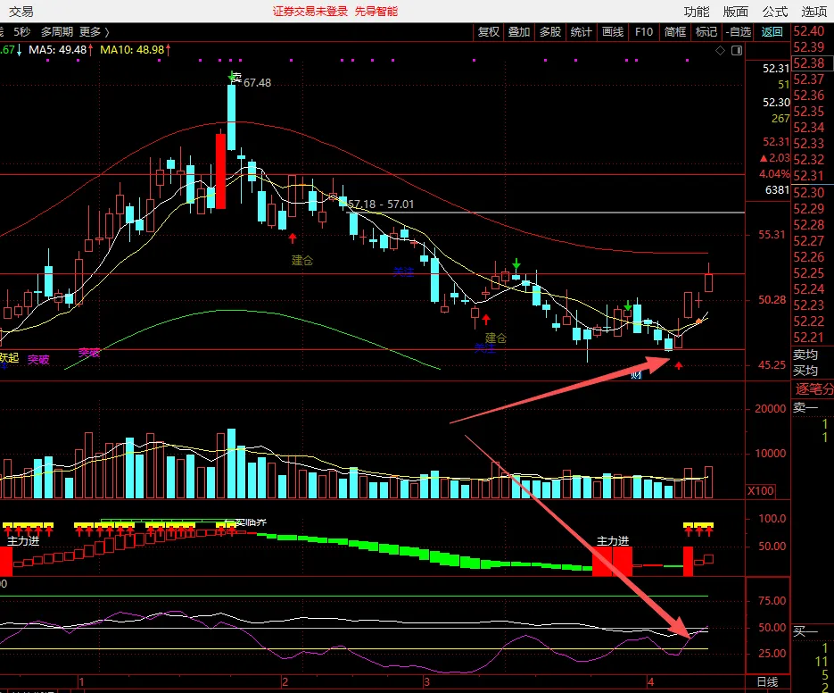 三个信号同时满足,就是安全的低吸点。哪怕标的在底部转折位置,只要符合条件,就可以果断介入。后续我们要多在分时高低点下功夫,尽量卖在次高点、买在次低点,每天做两三个点的差价,复利下来,一个月的收益非常可观,千万别小看这种稳定的盈利模式。