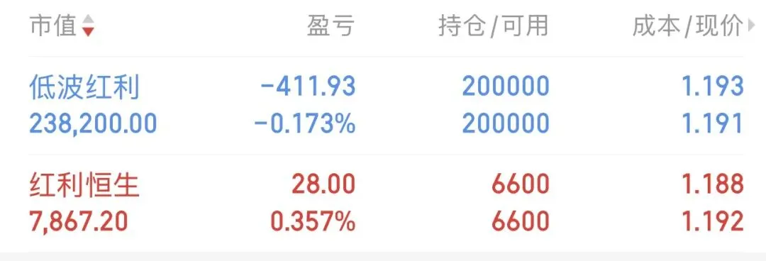 今天加仓了低波红利、目前持仓24.5万、仓位比例60%。