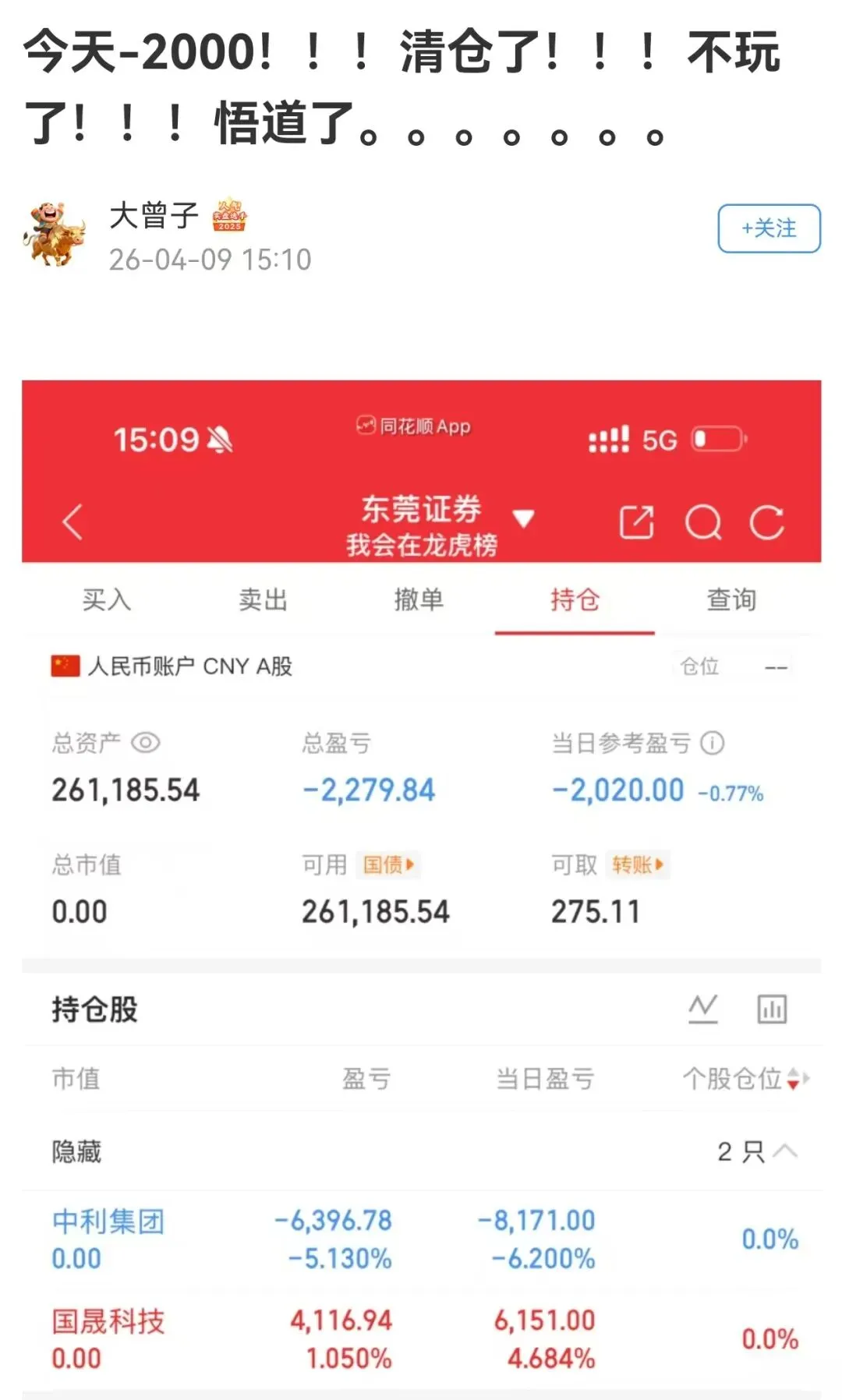 大曾子大牛行情“亏肿了”!上车鑫多多概念高呼清仓,反手就是梭哈