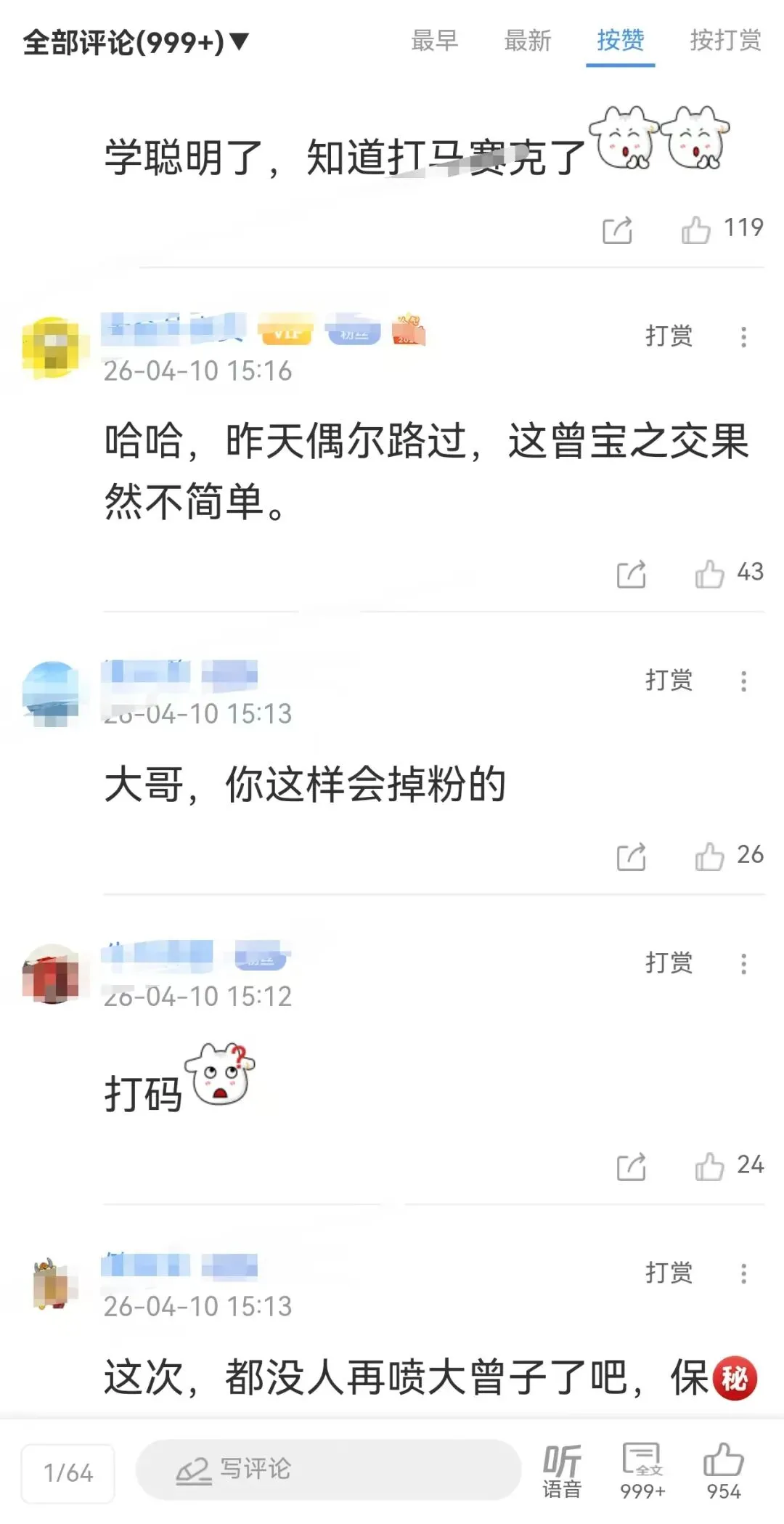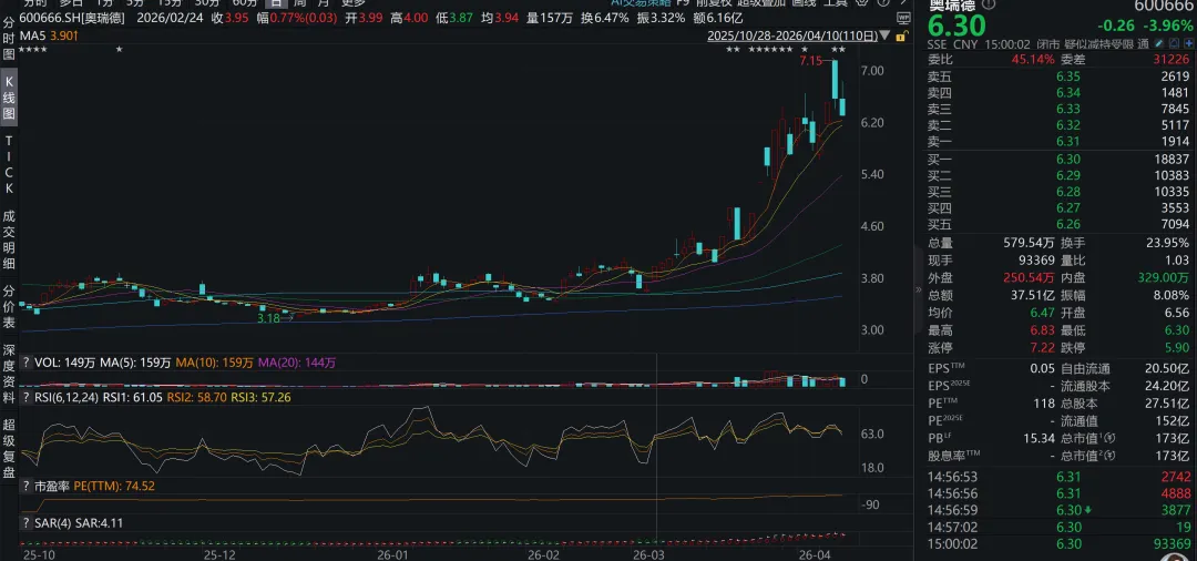 4月10日,最近抖音博主“大曾子”突然火了起来,相较于“王小雨”的“反指人设”,大曾子则是彻头彻尾的反指,近期一度杀入鑫多多概念被埋,回本后高呼“清仓、悟道”,随即反手就是一个追高,满仓梭哈,大牛行情“亏损惨重”。大曾子是一名抖音反指博主,去年10月,他起初带着68万本金冲进股市,中途又追加9万,全部家当77万目前只有27万左右,目前粉丝高达77万,淘股吧粉丝也有11万。不过,有网友爆料,大曾子悄悄开了会员群。进群费每月299元,据说群里早就挤了500多号人。按这个数算下来,他每个月光会员费就能收十五六万,比很多散户一年的工资还高。金石杂谈查询发现,2024年924行情以来,不少股民开启了抖音炒股时代,彼时业内人士直言:现在炒股票也直播化了,投顾比基金经理还值钱。在2024年924行情引爆牛市爆火之际,有财经大V坦言:九方,10月业绩8.6亿。有网友评论,“我是从业人员,上个月税前13w,每天8.30上班到凌晨1点下班”。不过,抖音炒股也引发一系列问题,大v的违规荐股、粉丝的羊群效应、无脑杀入的常态,收割韭菜的温床。当然了,这不是本文重点,咱们继续回到抖音博主“大曾子”。大家都知道,3月以来中东局势不断反复,A股也是深受其害,美股也是不断上演猴市。但是,鑫多多持仓的国晟科技们则不断创出新高。随着鑫多多杀入,国晟科技不断炒作,今年1月14日上交所出手,依规对相关投资者采取了暂停账户交易等自律监管措施。上交所再次提醒投资者关注风险,审慎参与,合规交易。随后,国晟科技开启跌停之旅,如今该股股票再度创出历史新高,3月以来股价已经翻倍。于是,4月8日“大曾子”在国晟科技高位杀入13万,当天亏损近2000元;而后第二天国晟科技赚钱后就清仓了,不止清仓了国晟,而且清仓了中利集团(就在前两天光伏持续爆发,同样是追高)大曾子表示:“今天亏2000,清仓了,不玩了,悟道了”。你以为他悟道了,不过是单日亏损后的应激反应:追高意淫赚钱,亏钱就忍受不了,割肉随即离场。当然了,对于“大曾子”来说,“赌徒”只是表象,核心是流量和粉丝会员经济,毕竟一个月会员费就有10多万。于是大家发现,4月10日他分享的账户,几乎满仓杀入一只股票,单日亏损了5.4%,“巨亏”1.4万。对此,有粉丝认为他学聪明了,不露个股;还有粉丝认为“不显示股票,会掉粉的”;当然更多的人则好奇,他到底买了哪只股。果然,还是粉丝牛逼,L2行情的逐笔委托单中有笔6.66元,392手的单子,梭哈了26.1万,单日亏损1.4万,还剩24.7万,非常吻合。金石杂谈查询发现,奥瑞德有算力租赁业务,主要满足大模型训练需求,25年上半年收入高达1.1亿,占到了公司收入的一半以上。就在近期,腾讯云涨价,智谱发布新模型+涨价,deepseek传言v4.0版本即将推出,中美股市巨震等多重利好刺激,奥瑞德4月8日涨停,或是引发“大曾子”追高的核心原因。不过,奥瑞德近期也利空不断,一是截至3月31日,公司通过集合竞价方式减持了3274.8万股;二是4月16日公司将有8250万股的限售股解禁,对应3%的股份流通。至于鑫多多,近期也是火遍全网,炒作之风非常极致,除了国晟科技创了新高,像法尔胜、天银机电等纷纷大涨,但是这类股风险也比较大,涨跌停跌停也非常寻常。比如法尔胜今日跌停,天银机电昨日逼近跌停。就在今日,美诺华龙虎榜出现了中国银河证券北京学院南路,对此粉丝纷纷高呼:做兄弟,在鑫中。不过,也有股民质疑:该席位并非鑫多多的席位。但是现在的问题是,股民已经趋之若鹜,根本不关心是真的鑫多多席位还是假的,炒作之风根本停不下来。就在今日美诺华提示风险,针对市场关注的JH389产品,公司澄清其为益生菌膳食补充剂而非药品,目前尚处于研究试验阶段。前期国内试食试验样本量仅28例,结论普适性及确定性尚不充分。鉴于减重类非药产品竞争激烈,该产品未来能否实现规模化销售、形成稳定收入及利润贡献均存在重大不确定性。公司市盈率显著高于行业水平,提示投资者注意非理性炒作及股价快速下跌风险。