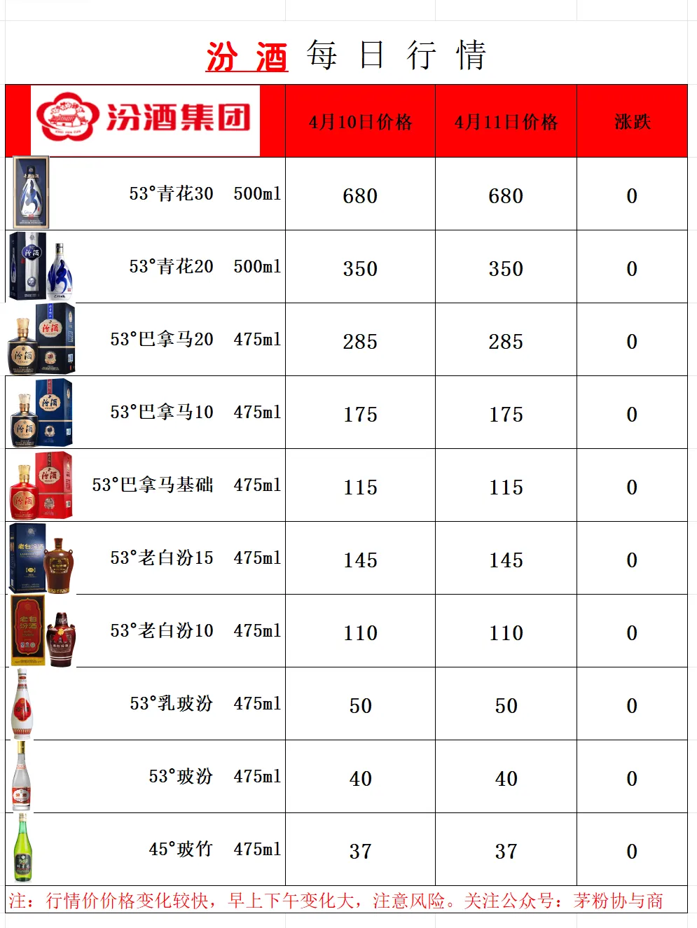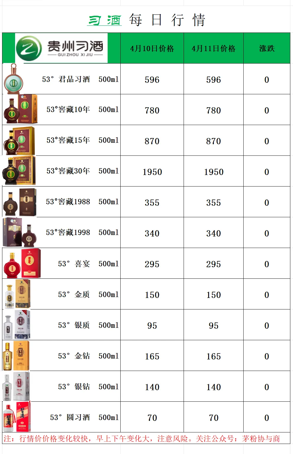 4月11日更新,茅台行情及一线回收参考价格汇总