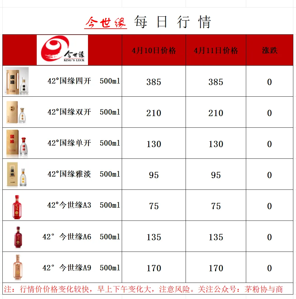 玖品聚社名酒行情:2026年04月11日名酒出货行情价