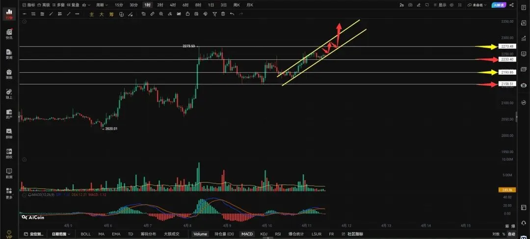 4小时级别跌破2222向下看2178-2135。大饼一直创出新高,二饼连前高都过不去你说二饼有多弱,二饼只要不跌破2233就不会去回踩2193,会一直在踩着旗形下边界向上走,想涨必须破前高。跌破2193就观察2158附近的价格行为找机会做多,散会。
