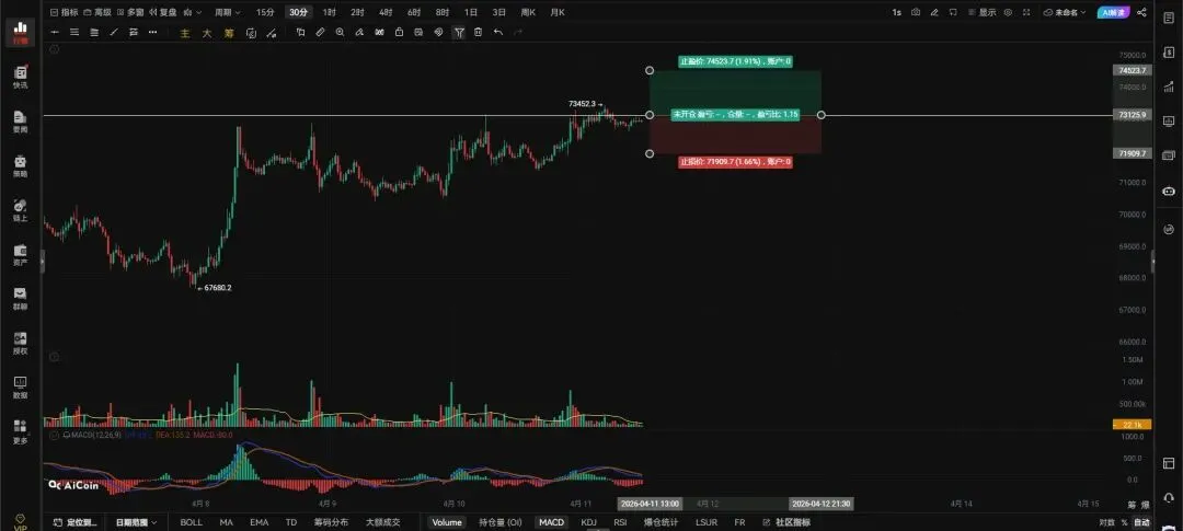 大饼带量突破73120右侧追多,72633带量跌破反抽无法收回右侧追空吃回调,