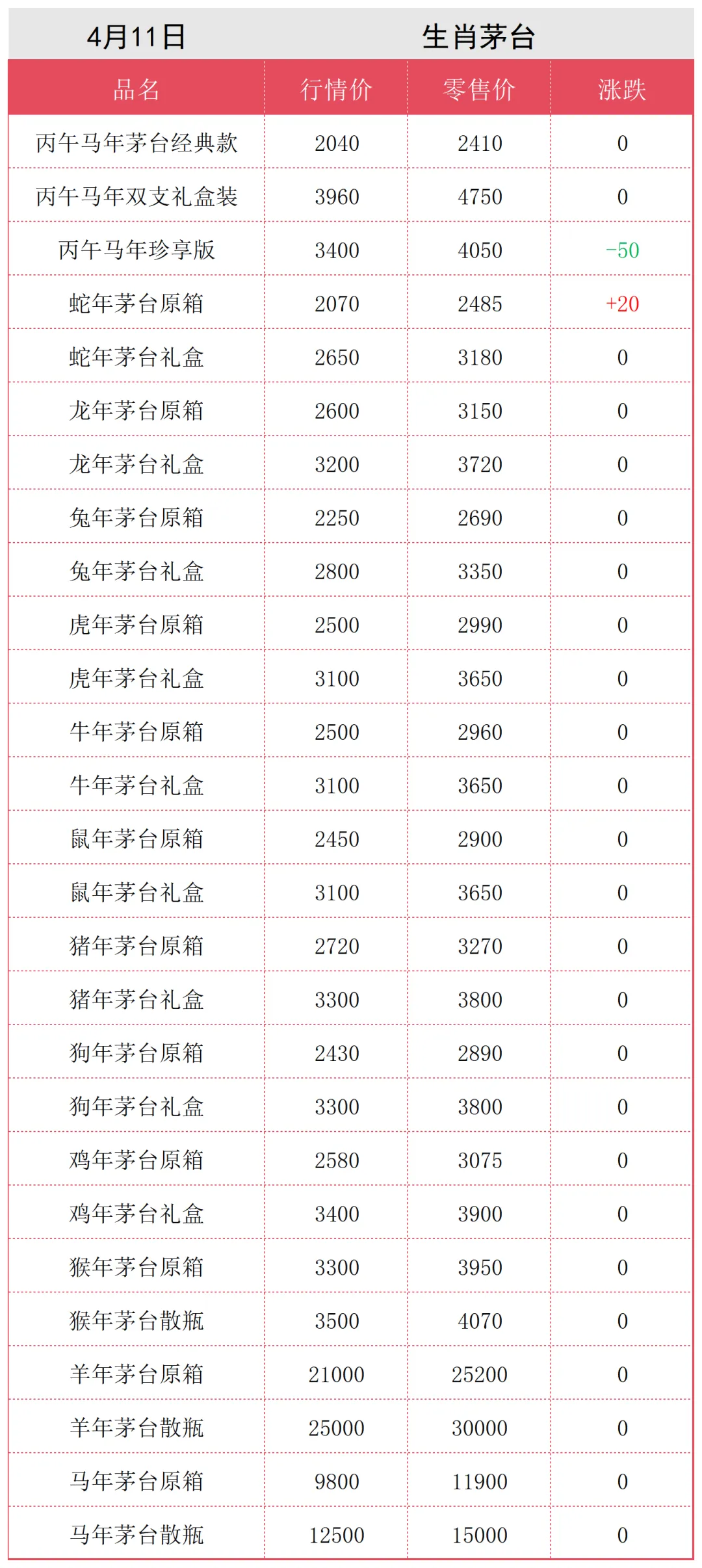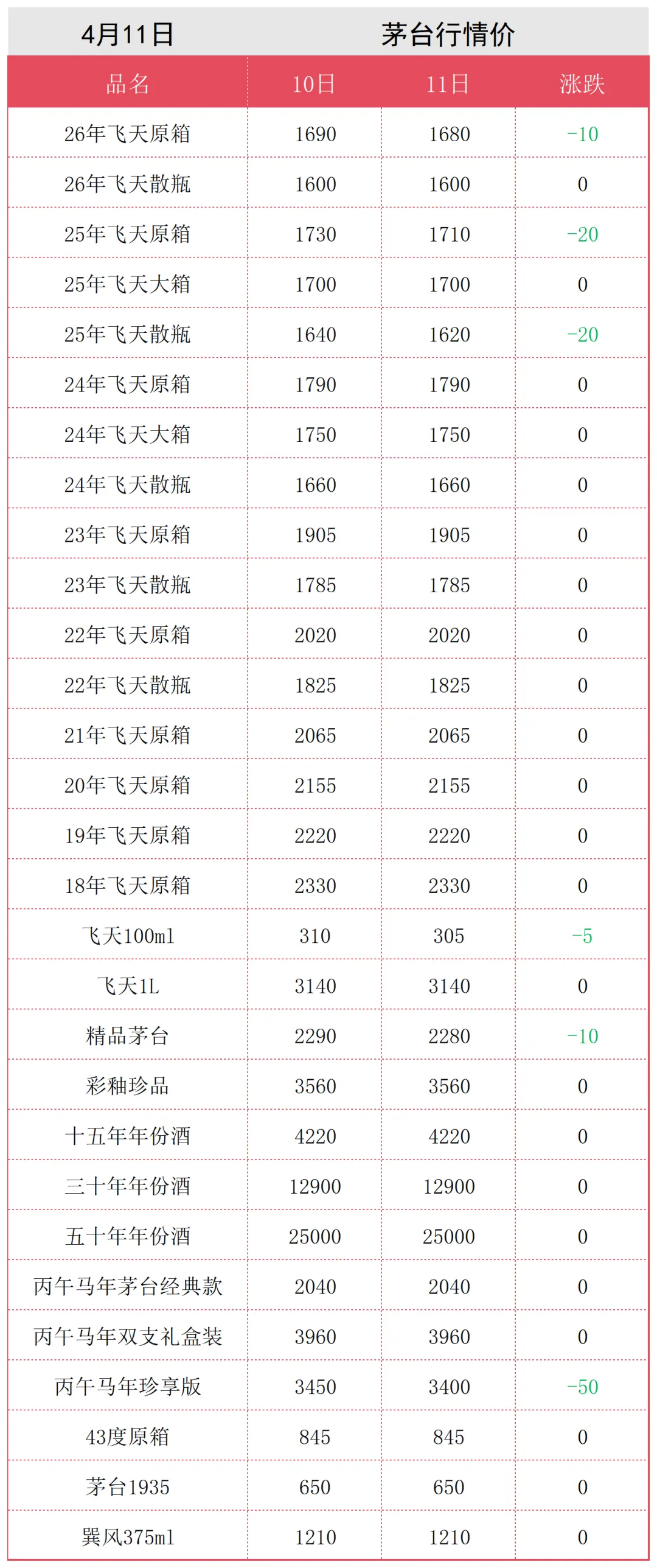 【下滑】4月11日茅台行情价格(后附回收价)