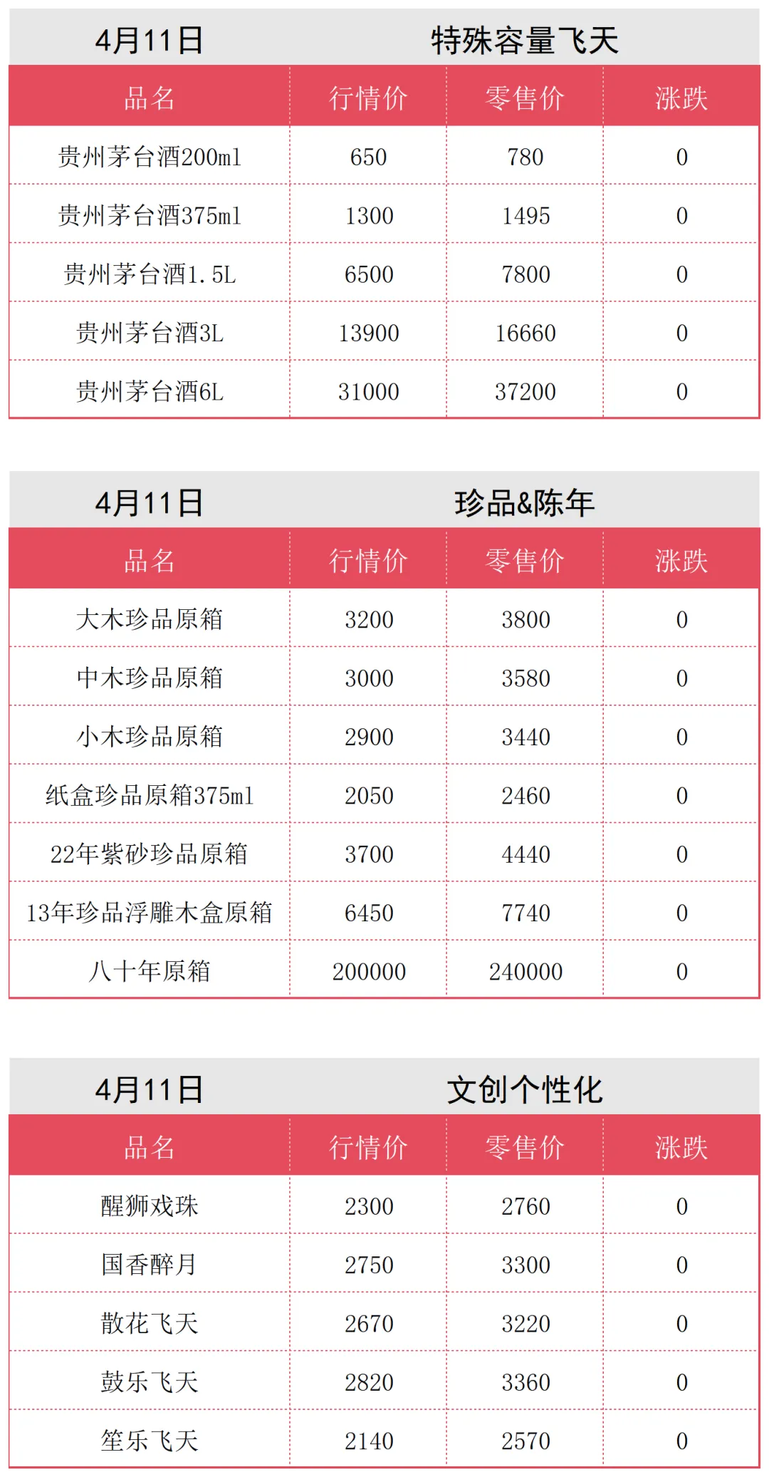4月11日更新,茅台行情及一线回收参考价格汇总