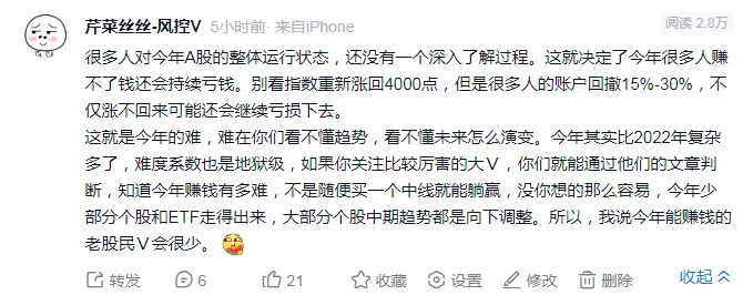 上面这段话是我今天所写,就是告诉你们所有粉丝,今年的资本市场博弈会很难很难,不是随便抄1个大V的作业,中线拿,就能躺赢躺赚。