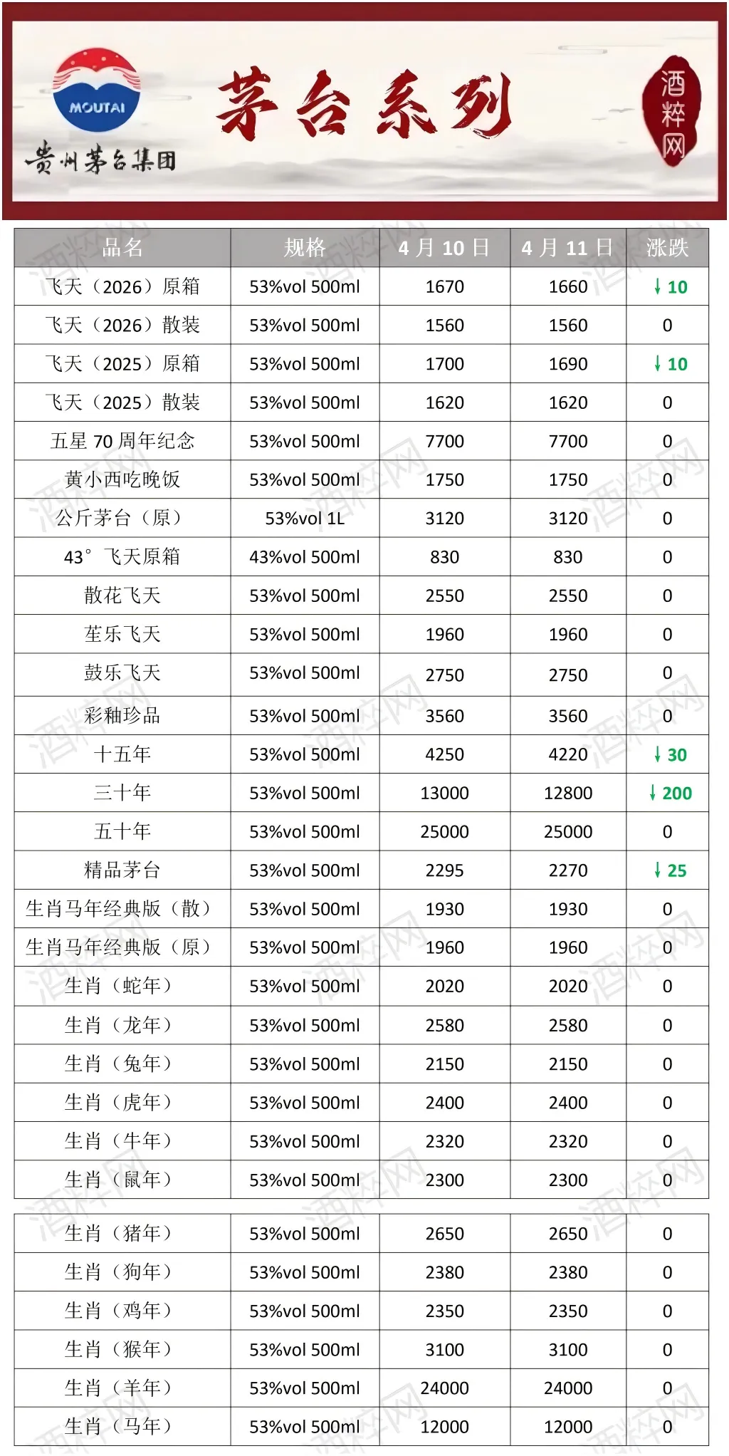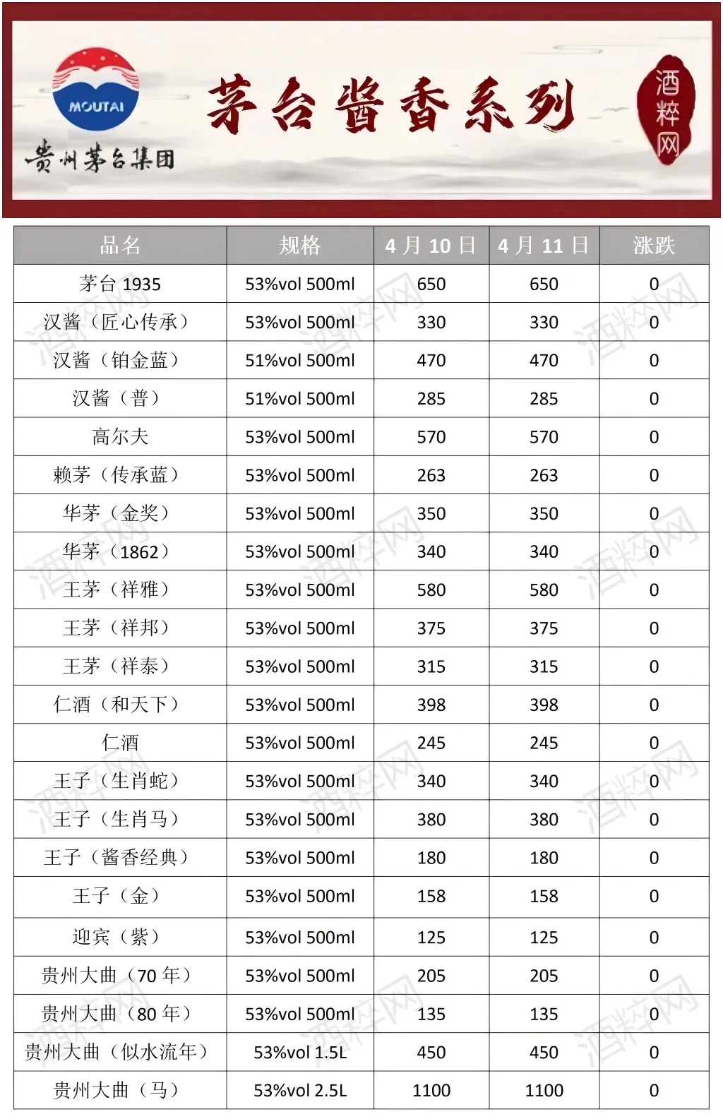 当前位置:首页>行情>酒粹•日价|4月11日全国名优酒价格行情