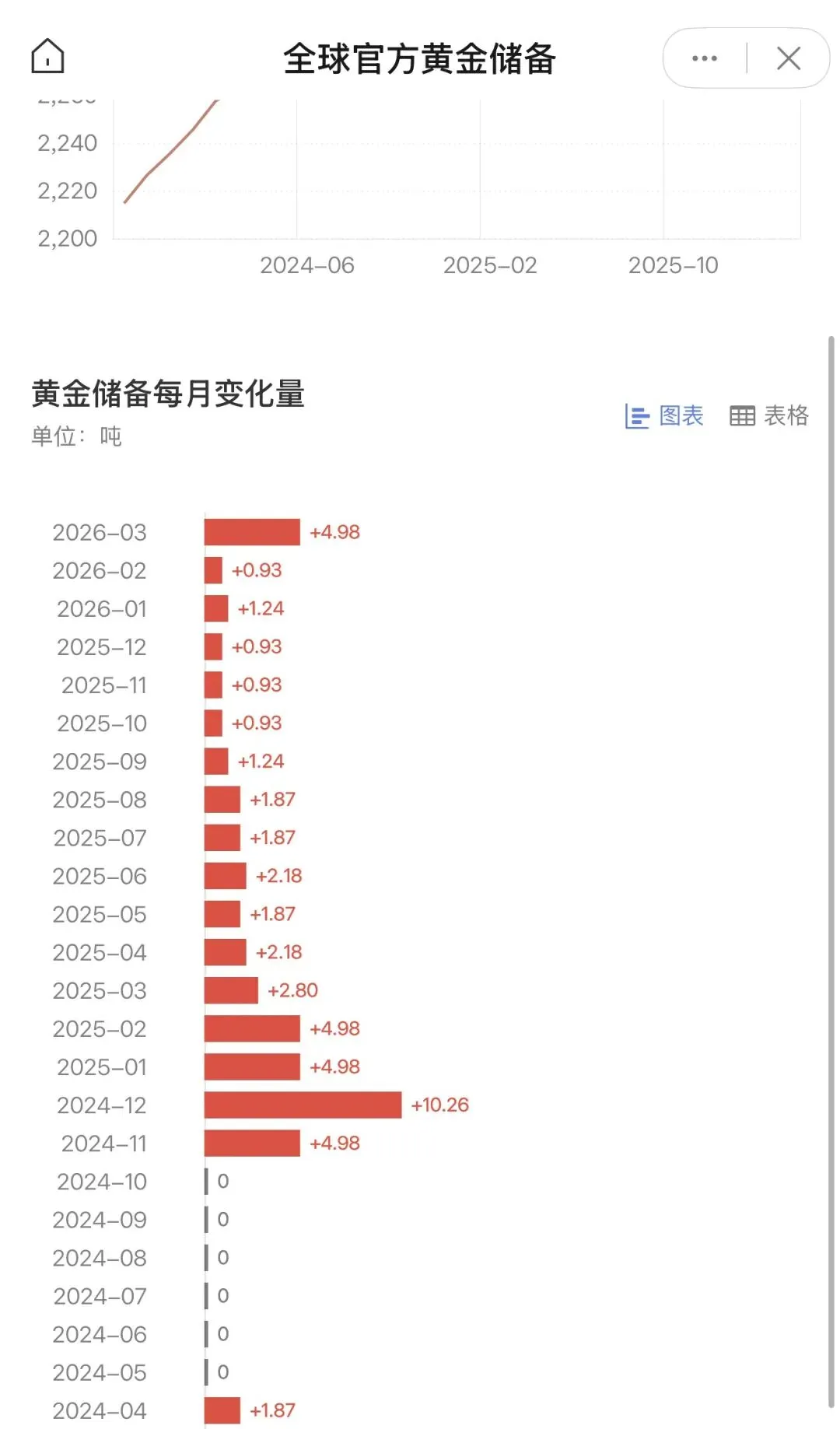 2.央行持续购金为金价提供支撑。中国央行第17个月加持黄金,而且三月份加持了4.98吨,远超以往每个月平均加1吨的增幅。央妈都在大跌的时候大量加仓抄底了